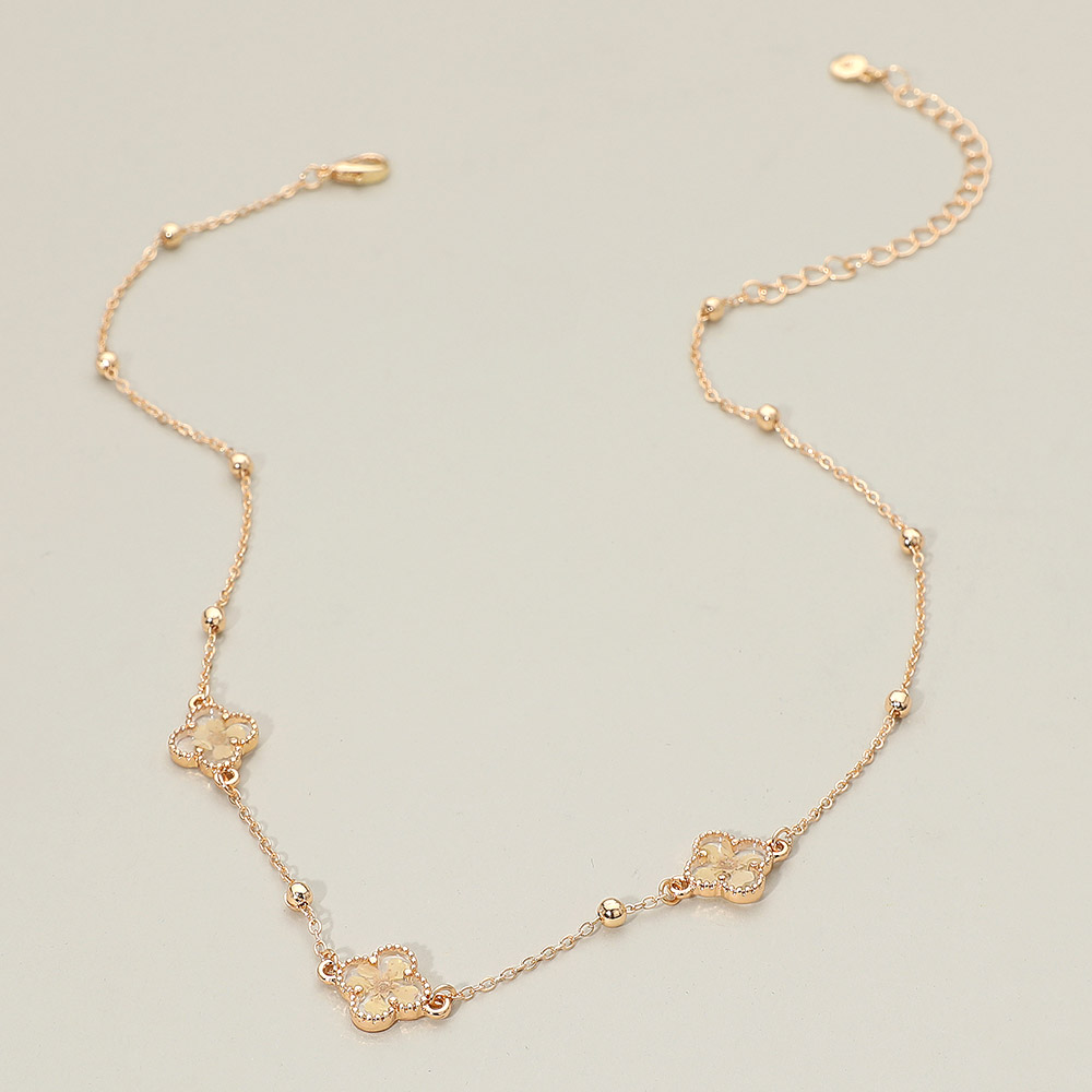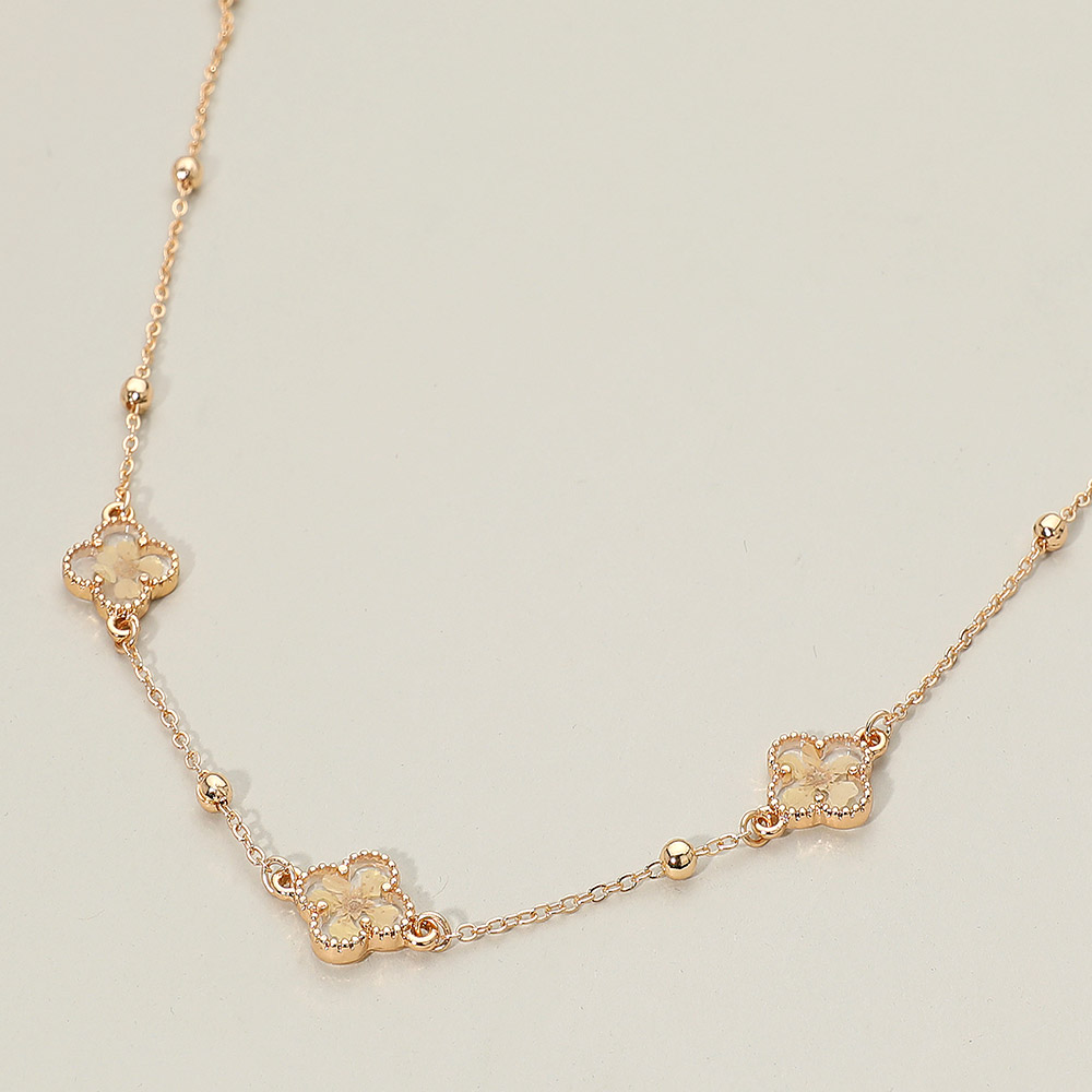Details • Necklace Size : 16" + 3" L • Decor Size : 0.5" L • Add subtle sparkle to everyday outfits with the Floral Encased Quatrefoil Charm Station Necklace, featuring delicately placed floral accents along a refined chain. Designed for easy layering or solo wear, this necklace offers timeless charm with a light, feminine touch for any occasion. • Lead and Nickel Compliant