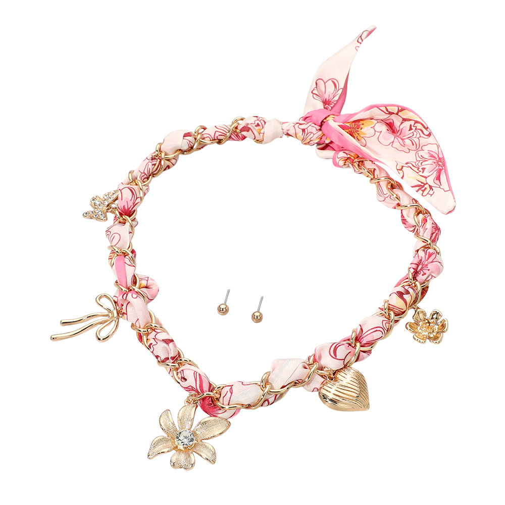 Flower Bow Heart Butterfly Charm Fabric Scarf Necklace Flower Bow Heart Butterfly Charm Fabric Scarf Necklace Flower Bow Heart Butterfly Charm Fabric Scarf Necklace