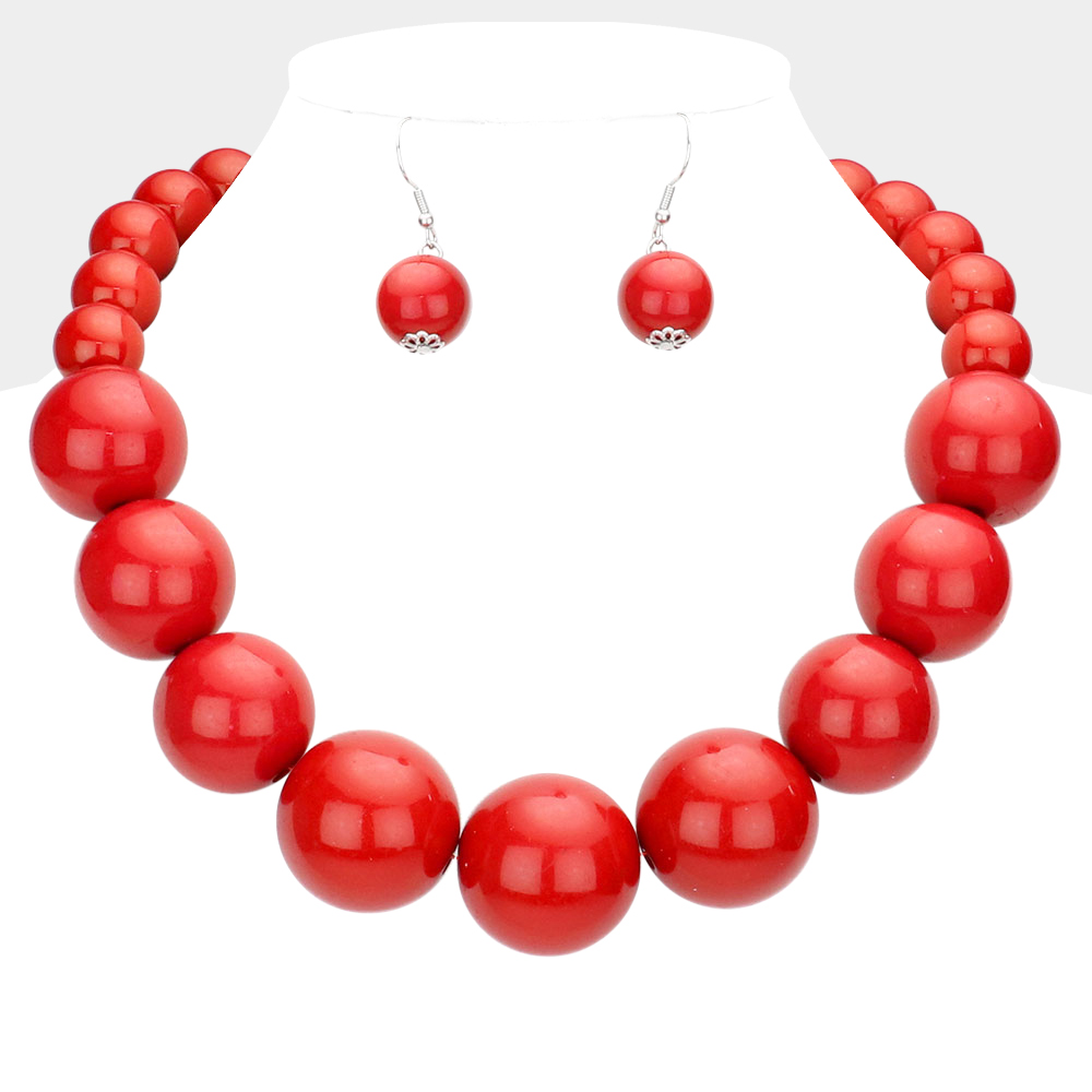 Details • Necklace Size : 18" + 4" L • Decor Size : 1.2" L • Earring Size : 1.5" L • Elegant graduated bead necklace paired with matching drop earrings for a coordinated, polished look. Designed to create visual balance and timeless appeal, this jewelry set is ideal for statement styling, special occasions, and boutique collections seeking classic silhouettes with versatile, easy-to-wear elegance. • Lead and Nickel Compliant