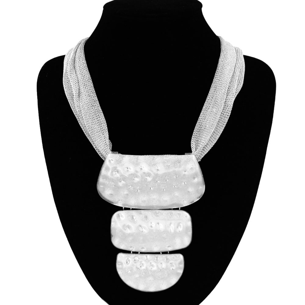 Hammered Geometric Metal Pendant Mesh Fabric Necklace