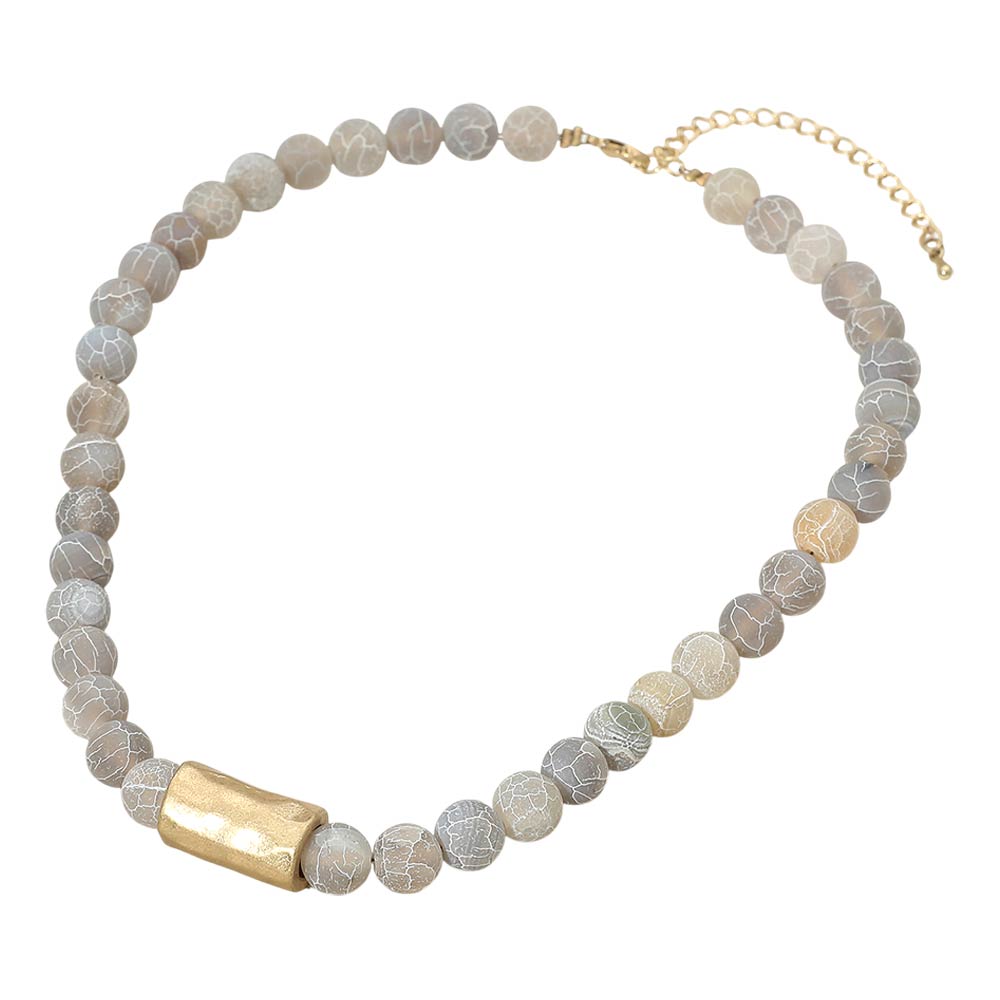 Hammered Metal Bar Accent Chunky Marbled Ball Beaded Necklace