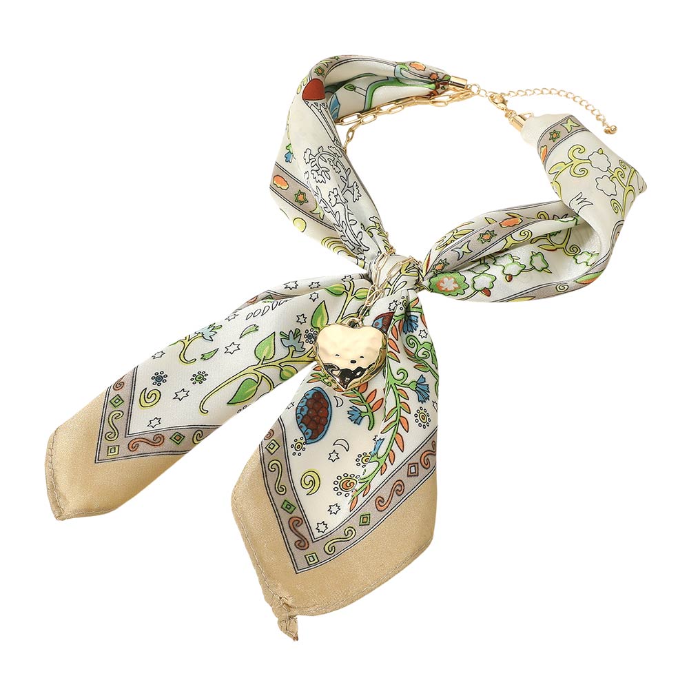 • This chain detail scarf necklace blends a soft draped scarf with a linked accent and heart charm for a refined statement look. Designed to wear as a necklace, it adds effortless polish to casual and dressy outfits, making it a versatile accessory for everyday styling and elevated fashion collections.