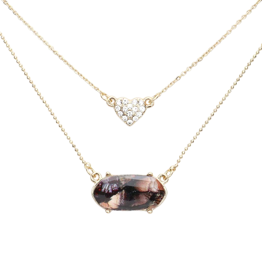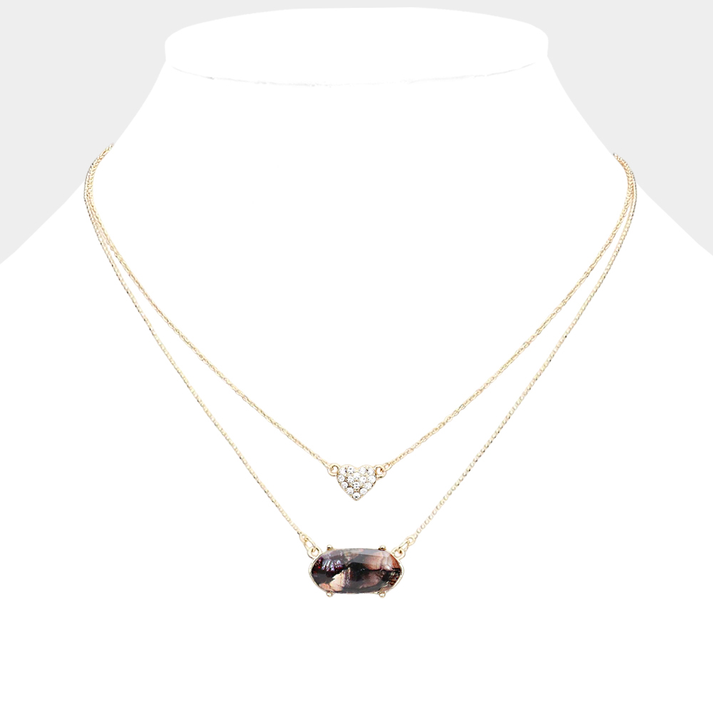 Heart Hexagon Bead Pendant Double Layered Necklace