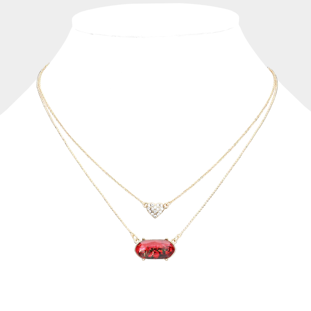 Heart Hexagon Bead Pendant Double Layered Necklace
