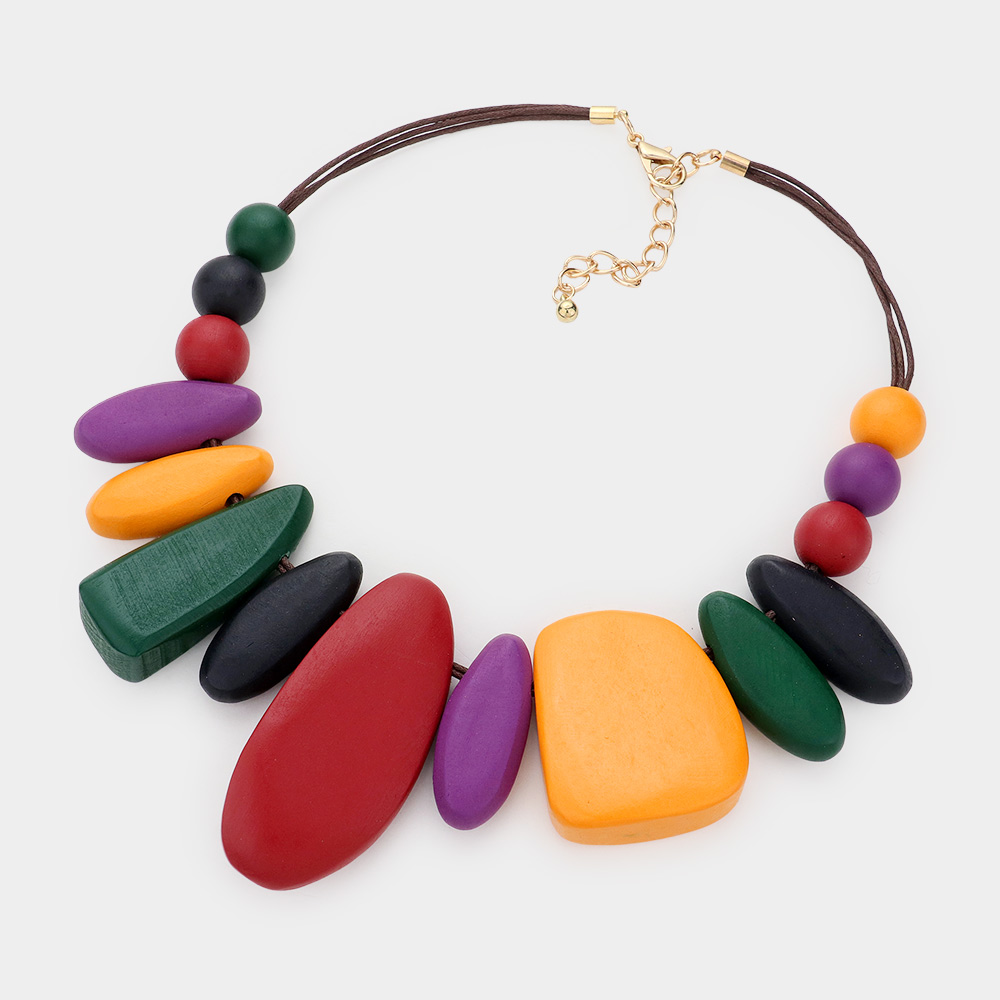 Resin Ball Accented Wood Beaded Adjustable Bracelet