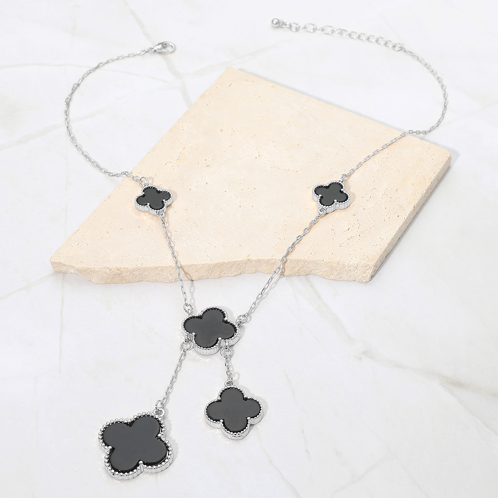 • Stylish necklace featuring multiple quatrefoil pendants in a cascading layered design. The elegant drop detail adds movement and sophistication, making it perfect for both casual and formal wear, offering a timeless charm that enhances any outfit effortlessly.