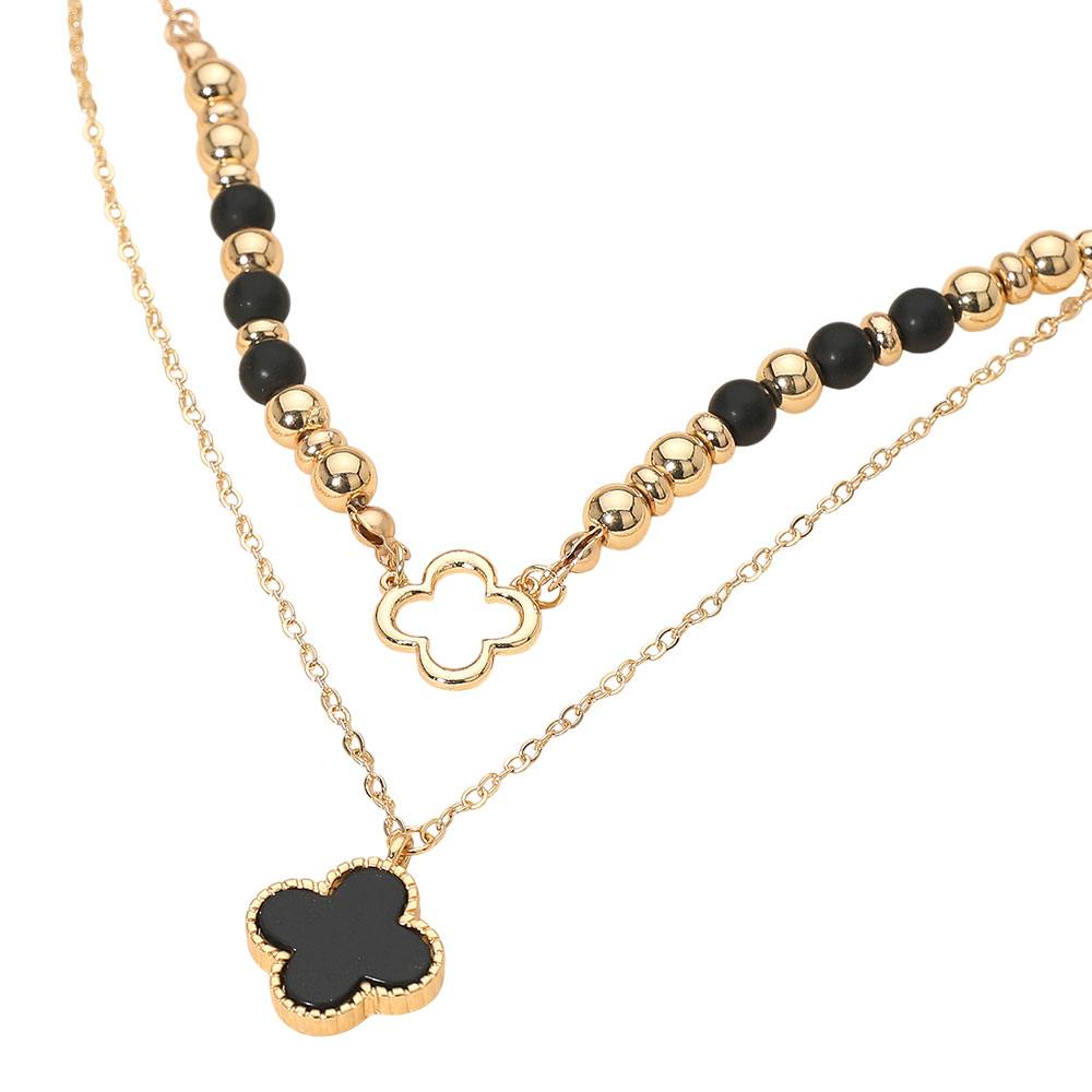 • Elevate your style with a layered quatrefoil pendant necklace featuring adjustable chains and delicate bead details for a refined, modern look. Ideal for wearing solo or stacked, this versatile accessory complements casual outfits, special occasions, and gift giving.