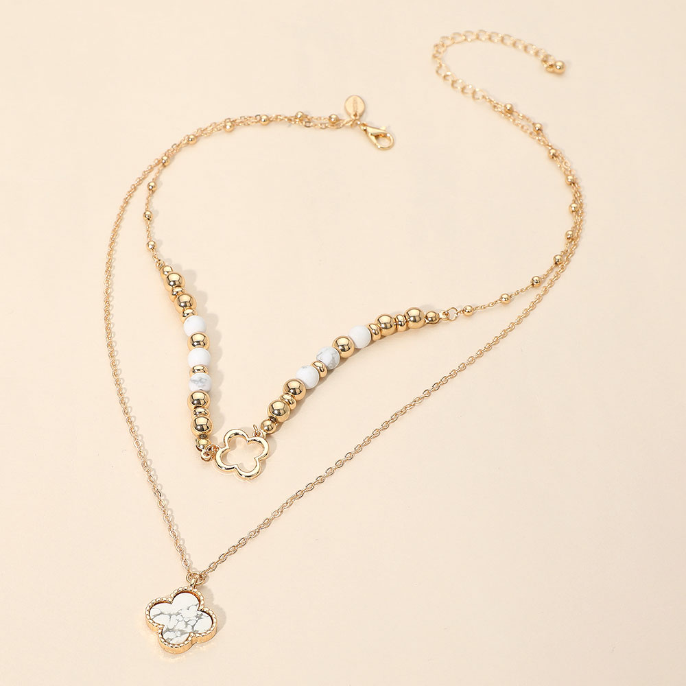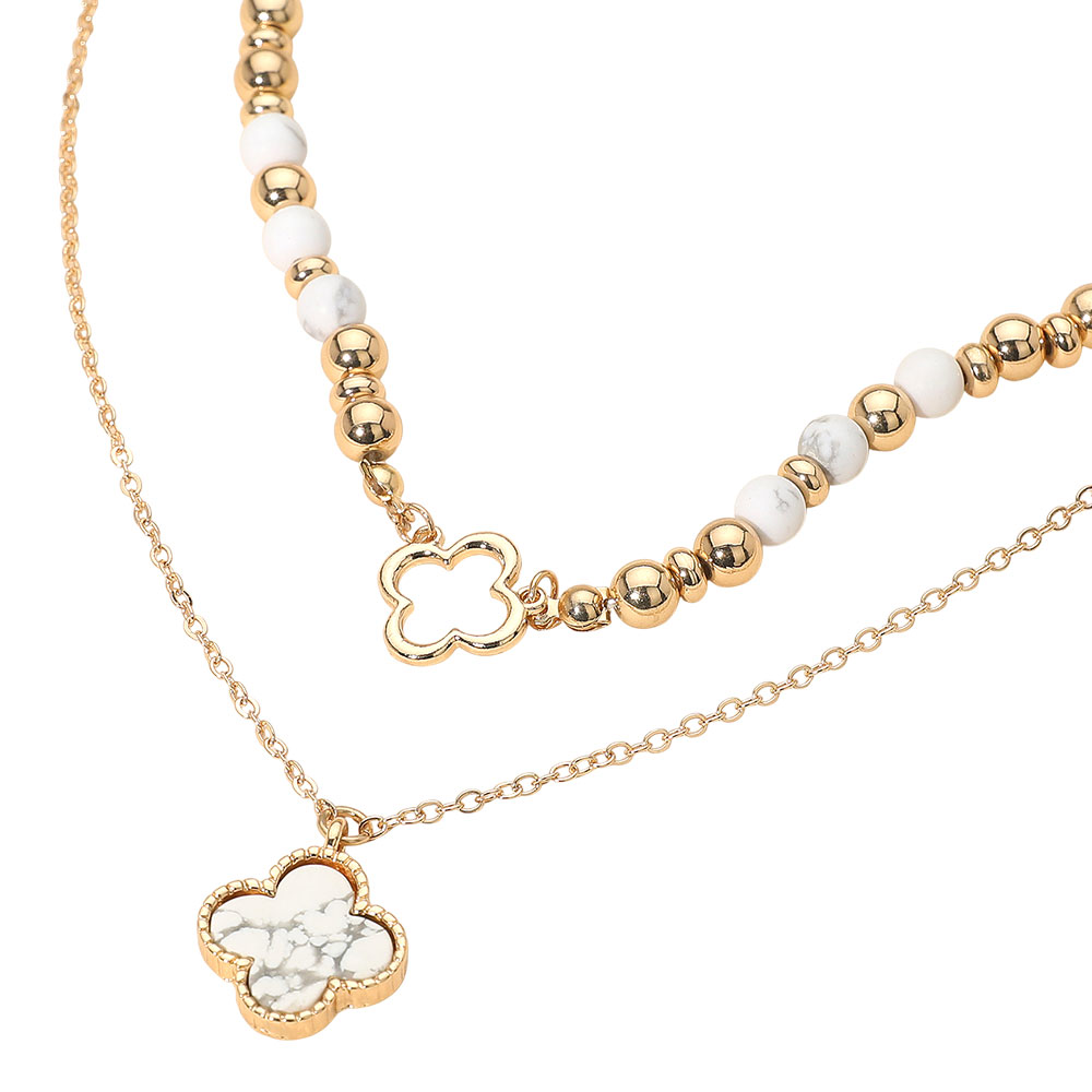 • Elevate your style with a layered quatrefoil pendant necklace featuring adjustable chains and delicate bead details for a refined, modern look. Ideal for wearing solo or stacked, this versatile accessory complements casual outfits, special occasions, and gift giving.