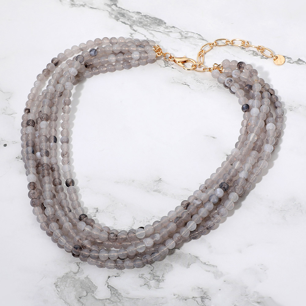 Marbled Resin Ball Beaded Multi Layered Statement Necklace