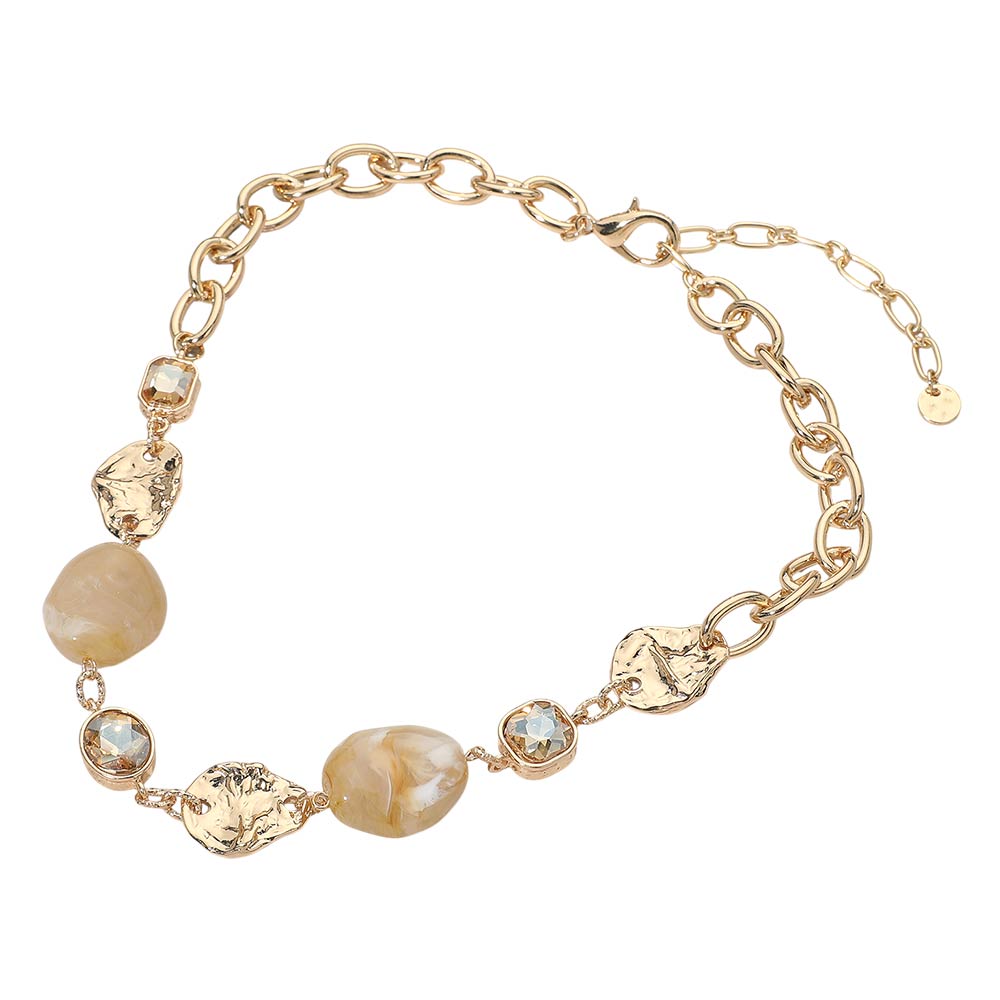 Marbled Resin Pebble Hammered Metal Plate Stone Cluster Link Necklace