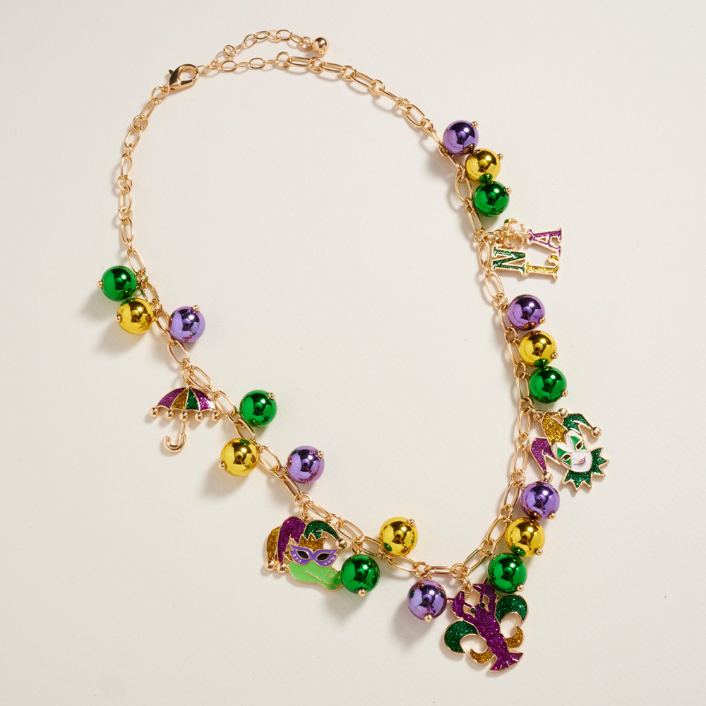 Mardi Gras Charm Beads Statement Necklace Mardi Gras Charm Beads Statement Necklace