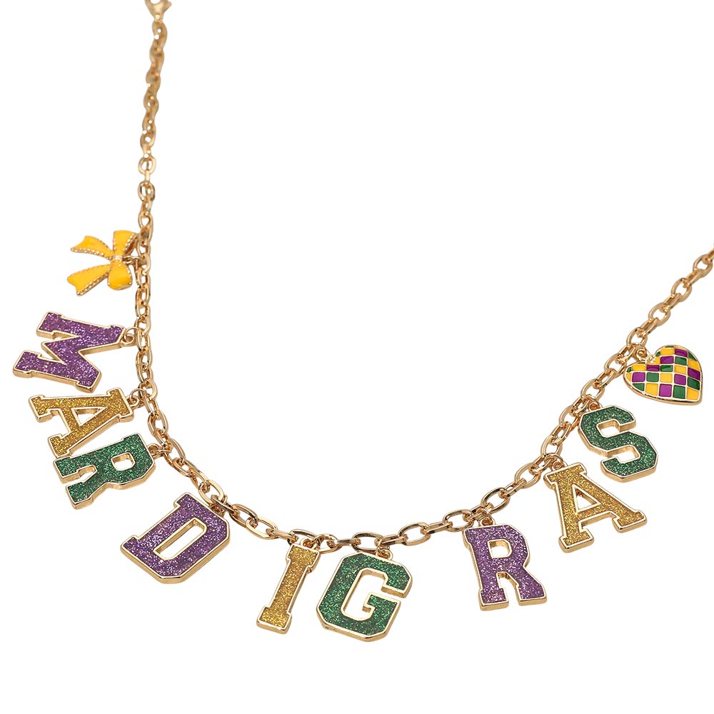 MARDI GRAS Letter Bow Heart Charm Station Necklace