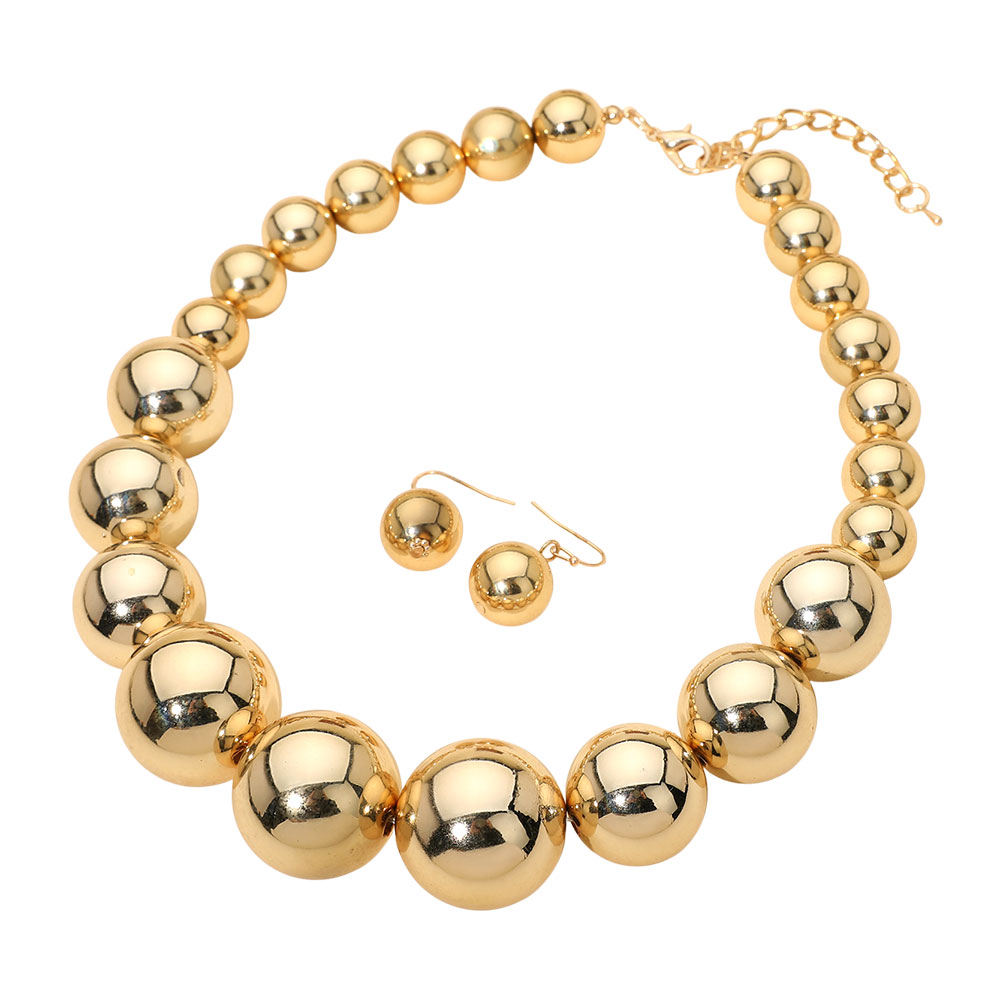 Details • Necklace Size : 18" + 4" L • Decor Size : 1.2" L • Earring Size : 1.5" L • Elegant graduated bead necklace paired with matching drop earrings for a coordinated, polished look. Designed to create visual balance and timeless appeal, this jewelry set is ideal for statement styling, special occasions, and boutique collections seeking classic silhouettes with versatile, easy-to-wear elegance. • Lead and Nickel Compliant