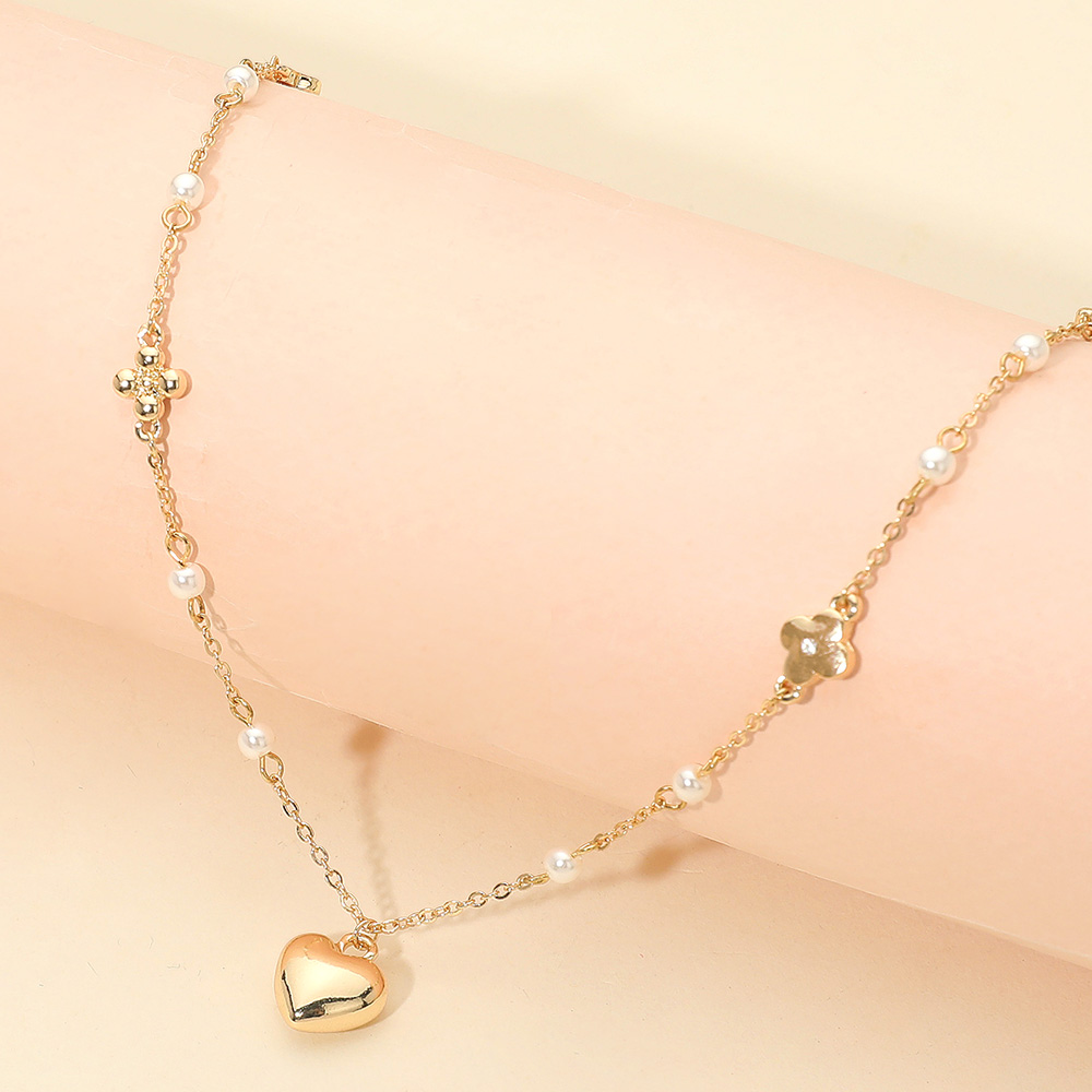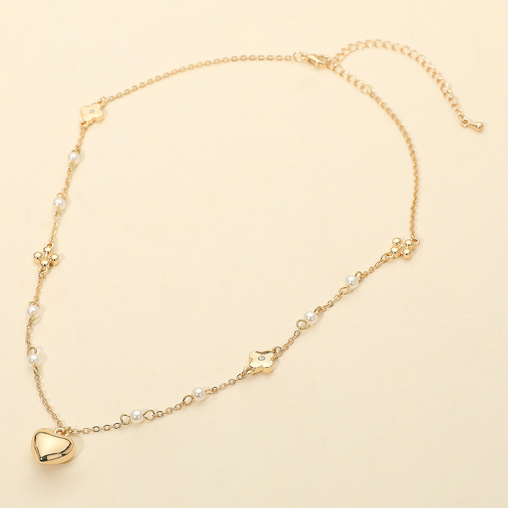 Details • Necklace Size : 16" + 3.5" L • Decor Size : 0.7" L • Elegant chain necklace featuring a dainty heart pendant, small bead accents, and floral-inspired details. Perfect for layering or wearing alone, this necklace adds charm and sophistication to any look. • Lead and Nickel Compliant