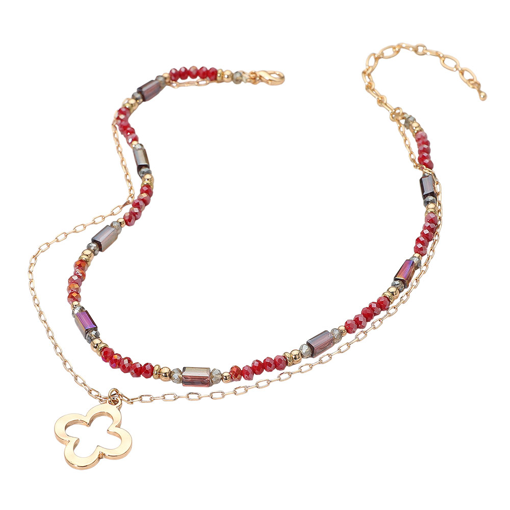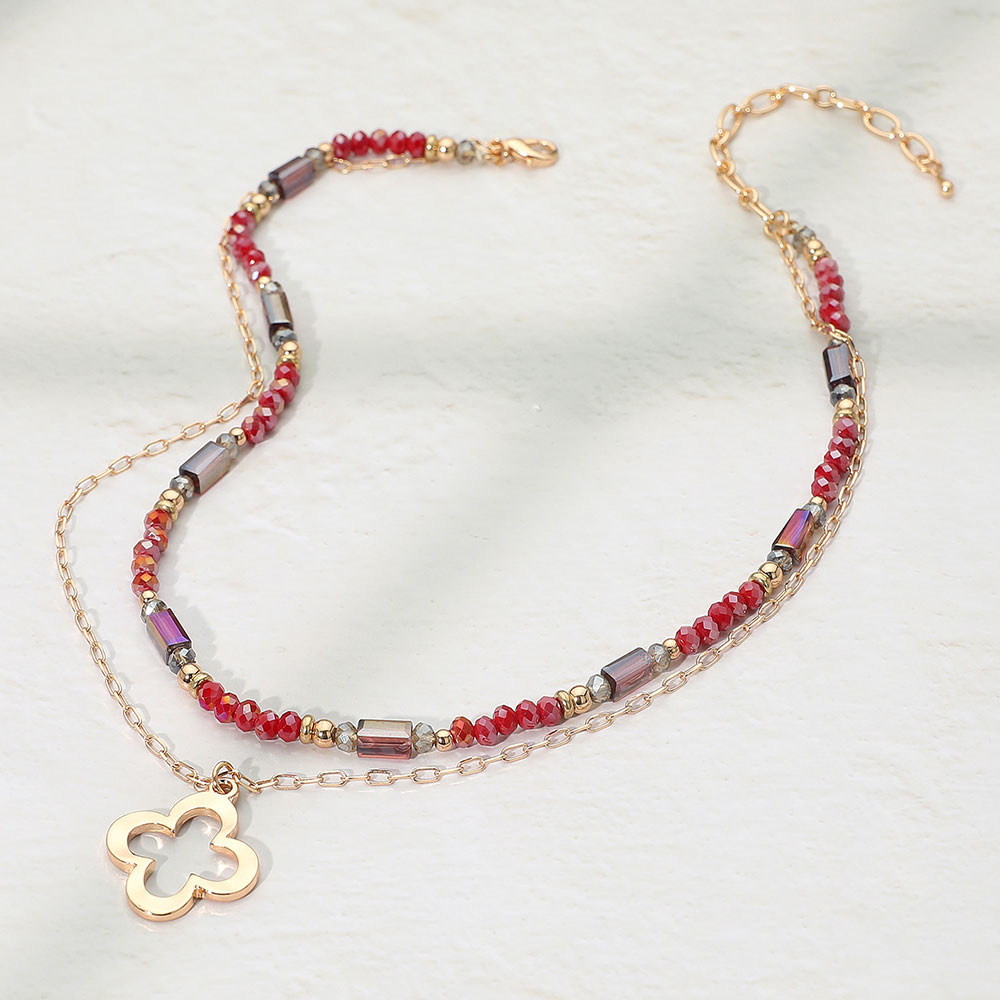 Metal Open Quatrefoil Pendant Faceted Beaded Layered Necklace