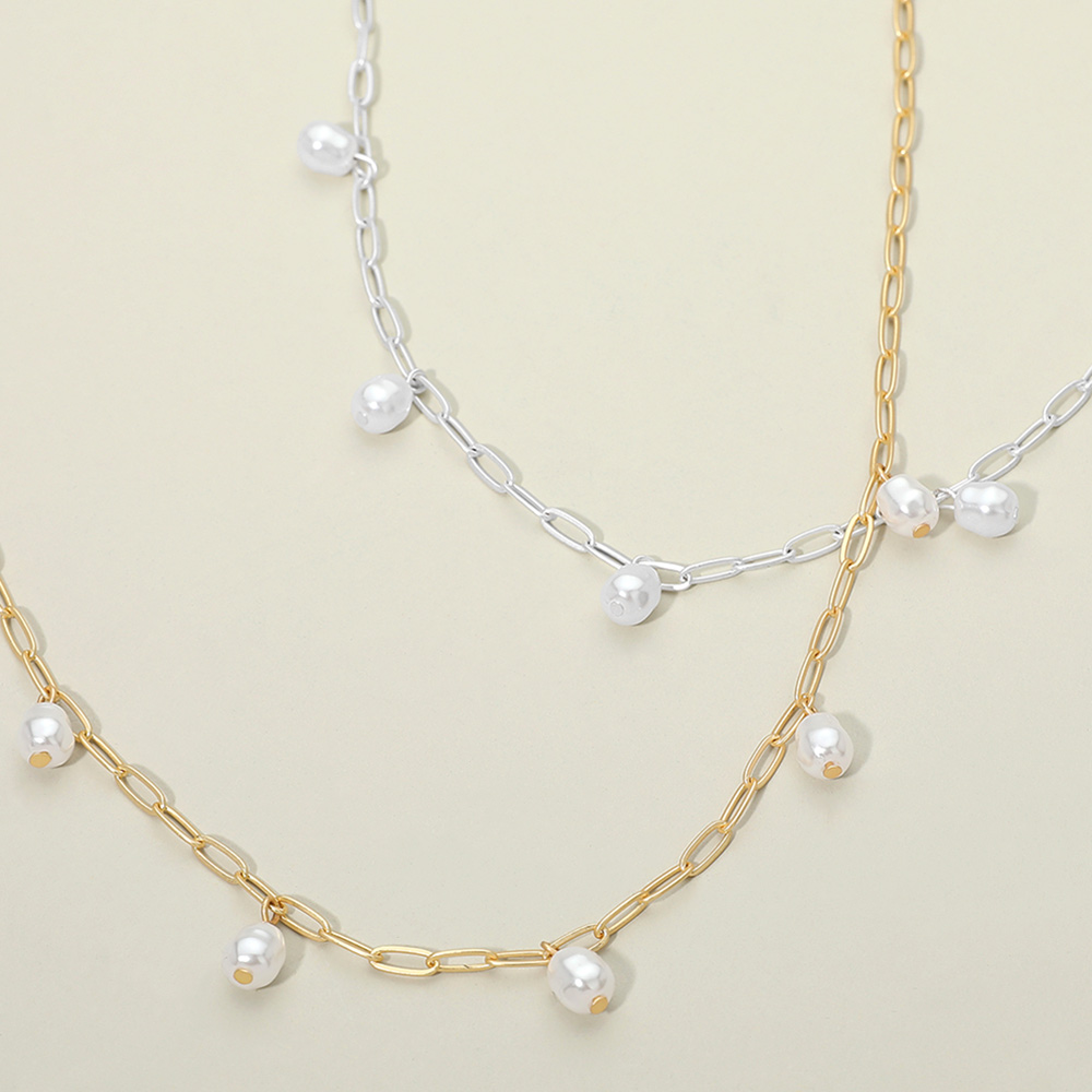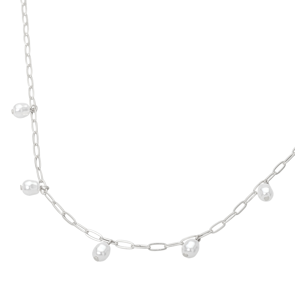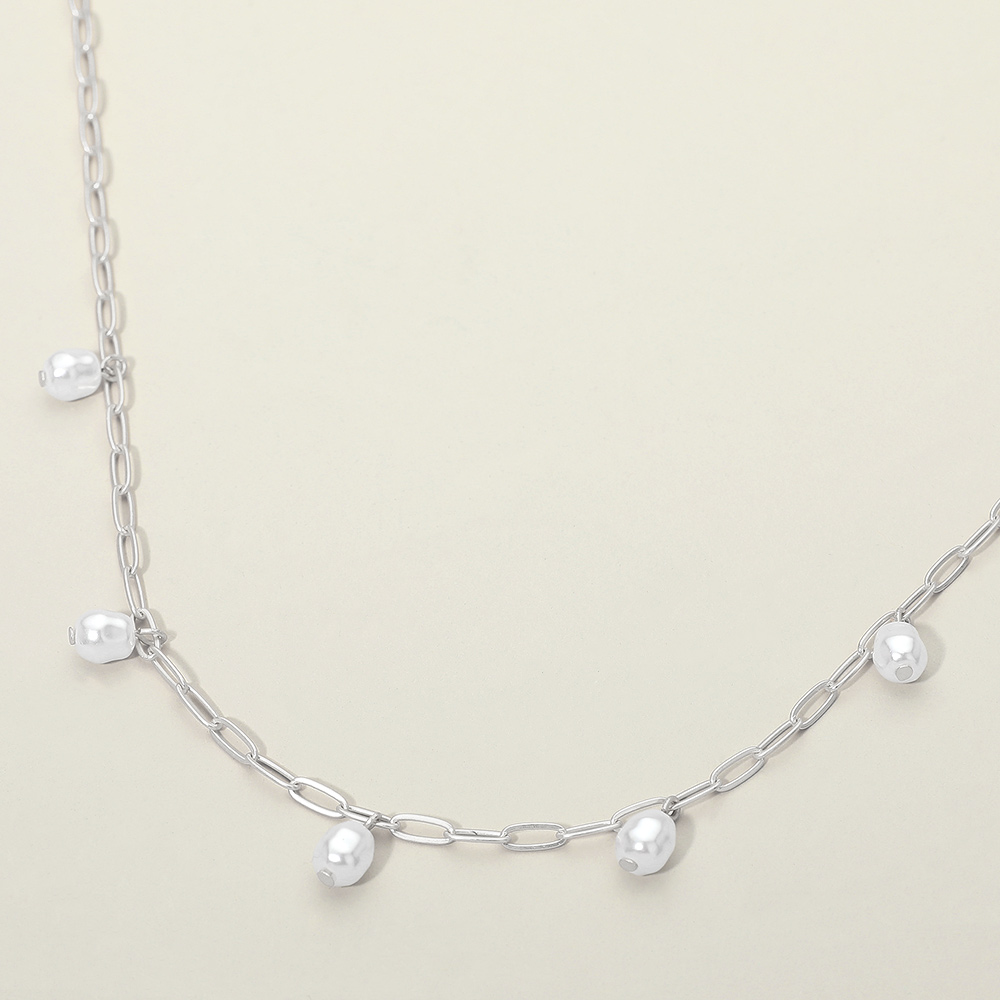 Details • Necklace Size : 16" + 3.25" L • Decor Size : 1" L • Delicate chain necklace featuring evenly spaced pearl bead accents for a clean, modern look. Designed to layer easily or wear alone, this understated style adds subtle movement and charm to everyday outfits. A versatile accessory ideal for boutiques seeking timeless, easy-to-style jewelry with broad customer appeal. • Lead and Nickel Compliant