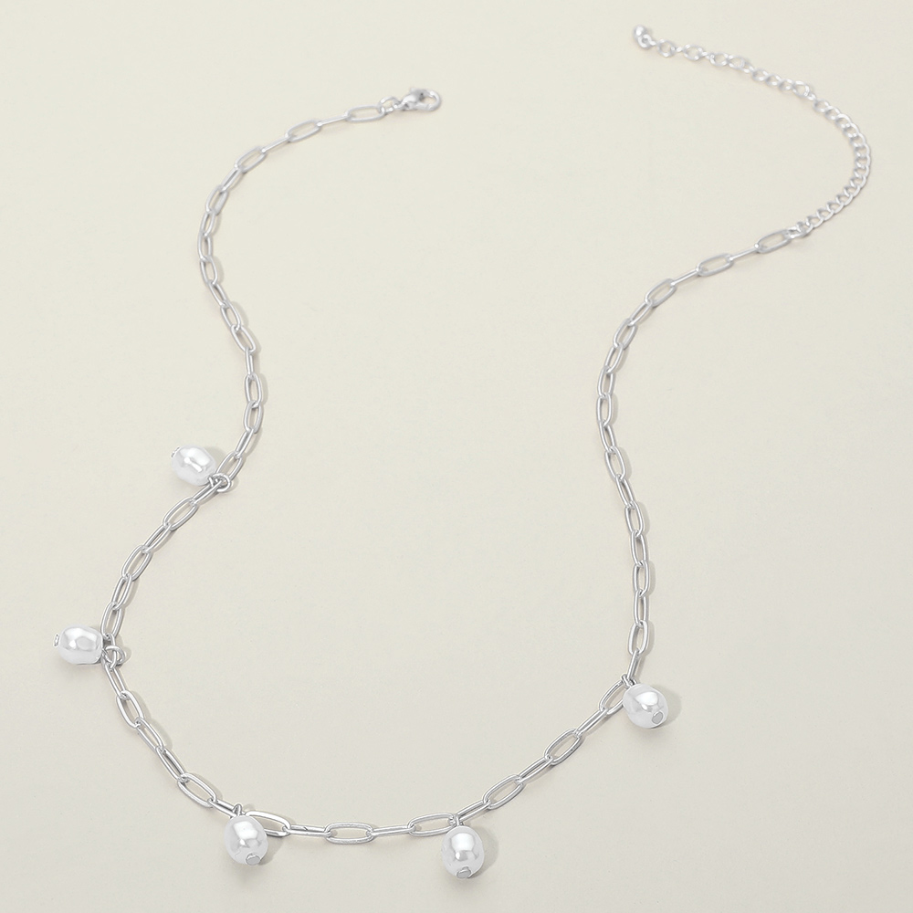 Minimal Pearl Bead Charm Station Paperclip Chain Necklace