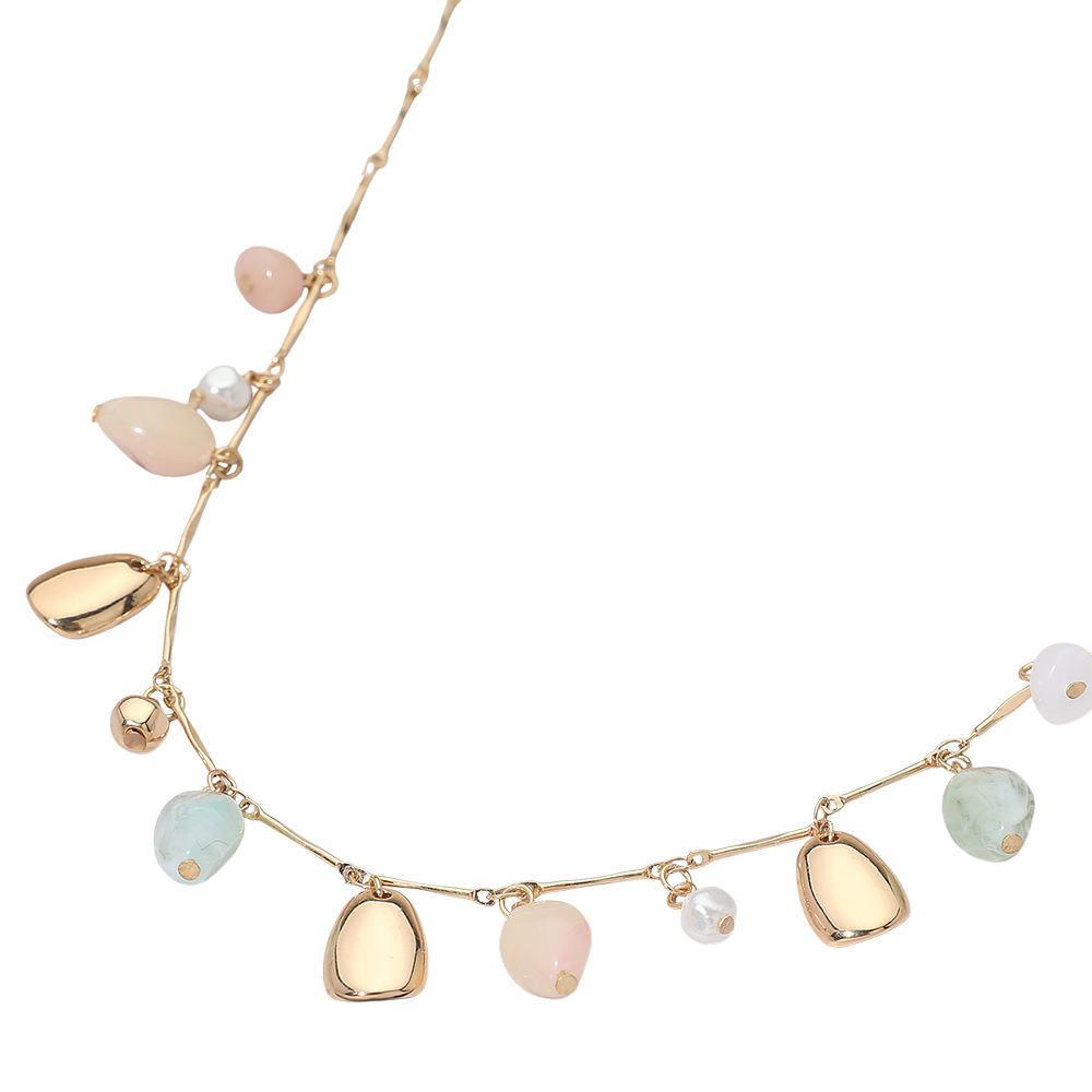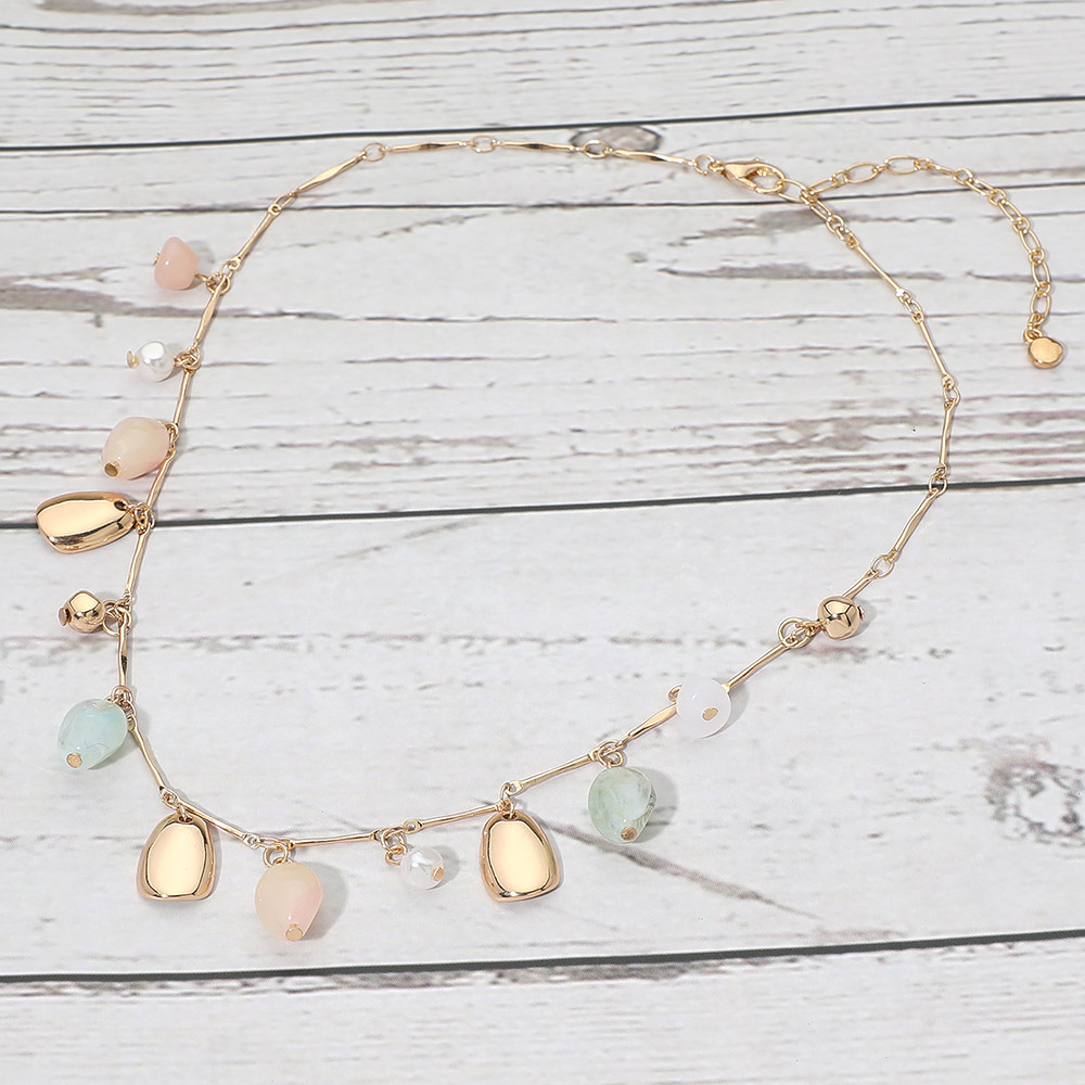 Details • Necklace Size : 15.25" + 3" L • Decor Size : 0.75" L • This station necklace showcases a curated mix of smooth drop charms and rounded accents spaced along a delicate chain, creating gentle movement and visual interest. Designed for effortless layering or standalone wear, it suits everyday styling, seasonal looks, gifting programs, and boutique jewelry assortments seeking versatile statement pieces. • Lead and Nickel Compliant