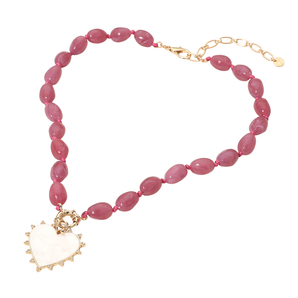 Details • Necklace Size : 20.5" + 4" L • Decor Size : 1.75" L • Elegant beaded necklace designed with marbled beads and a statement heart pendant charm. A fashionable accessory perfect for everyday wear or special occasions, adding romantic charm and a unique finishing touch. • Lead and Nickel Compliant