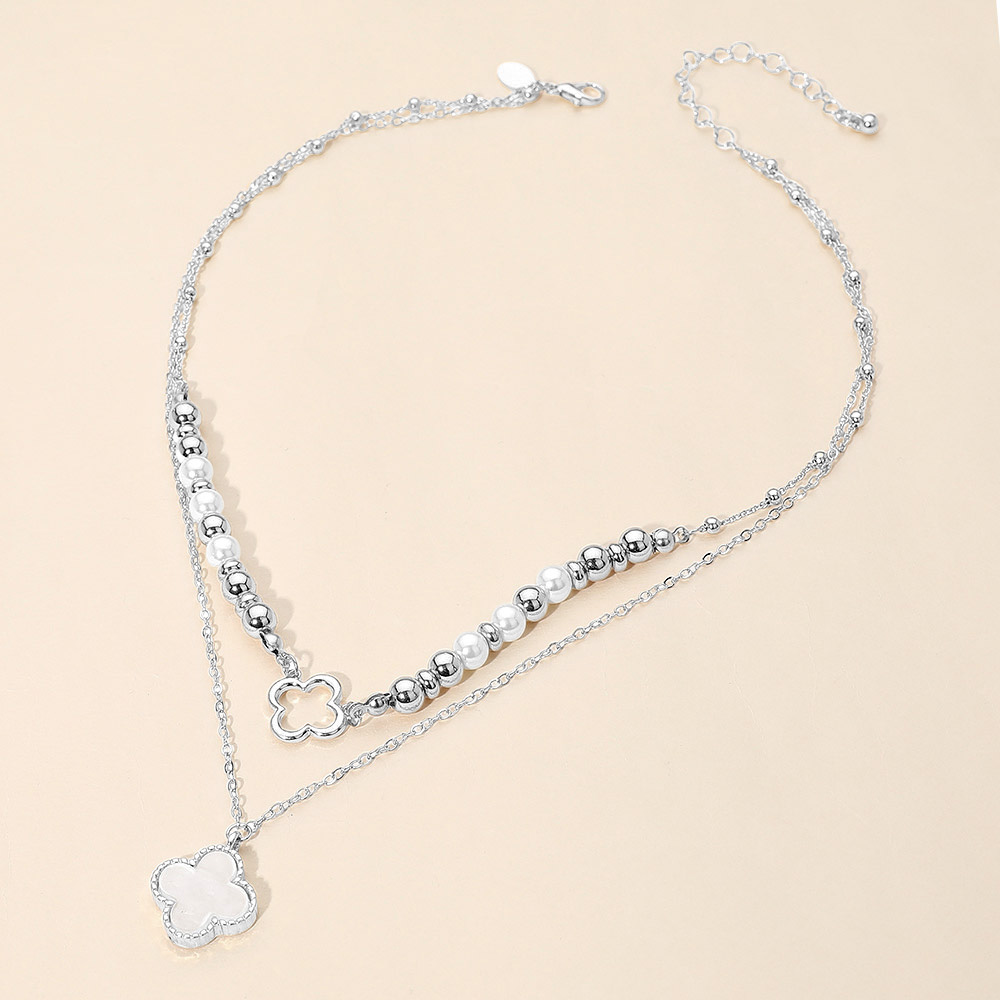 Details • Necklace Size : 16" + 3" L • Decor Size : 3" L • Pendant Size : 0.7" X 0.7" • Elegant layered necklace featuring beaded details and dual quatrefoil pendants for a refined, on-trend look. Designed to style beautifully alone or with other chains, it adds subtle charm to everyday outfits, evening ensembles, or thoughtful gift selections for any occasion. • Lead and Nickel Compliant