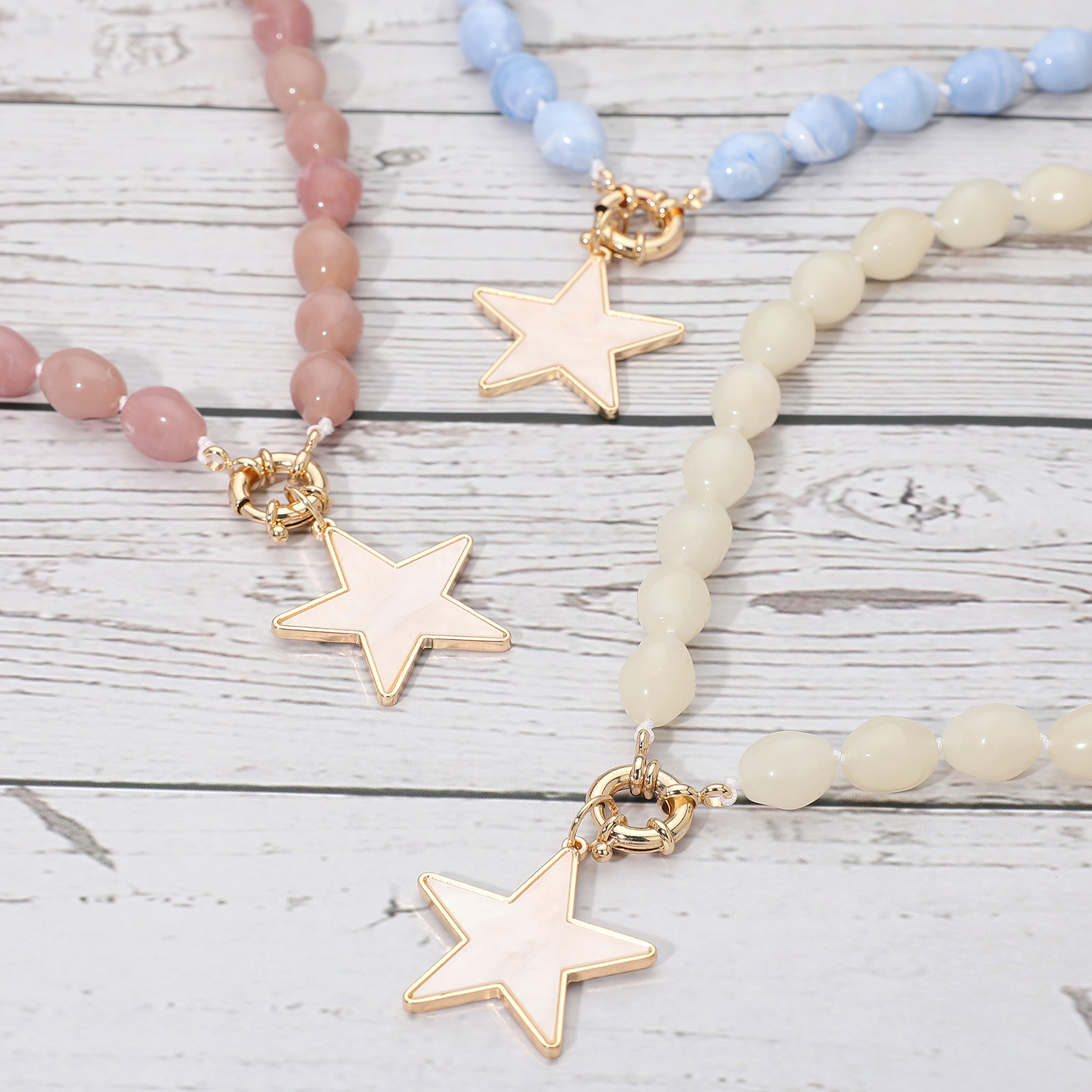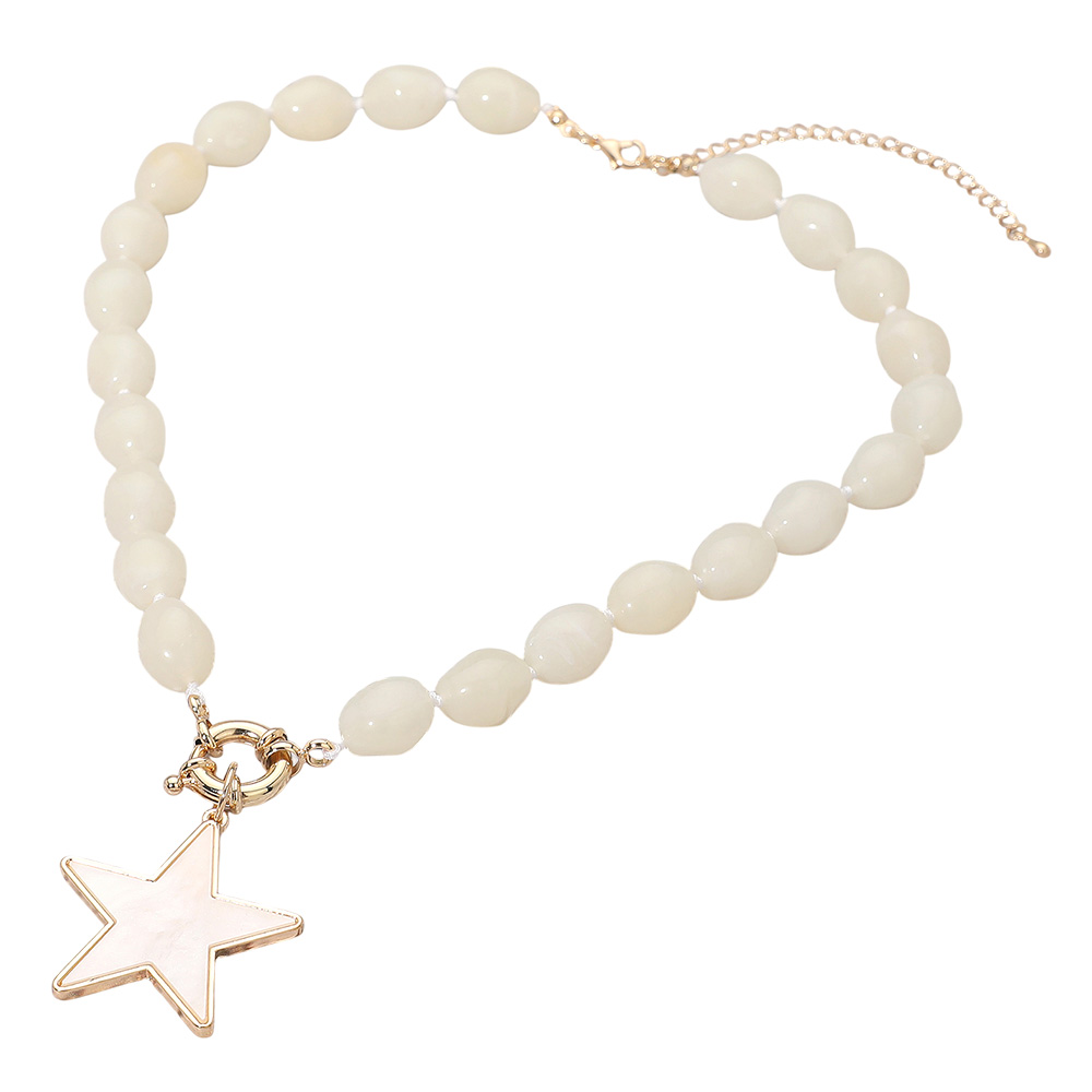 Mother of Pearl Star Pendant Marbled Pebble Beaded Necklace Mother of Pearl Star Pendant Marbled Pebble Beaded Necklace Mother of Pearl Star Pendant Marbled Pebble Beaded Necklace