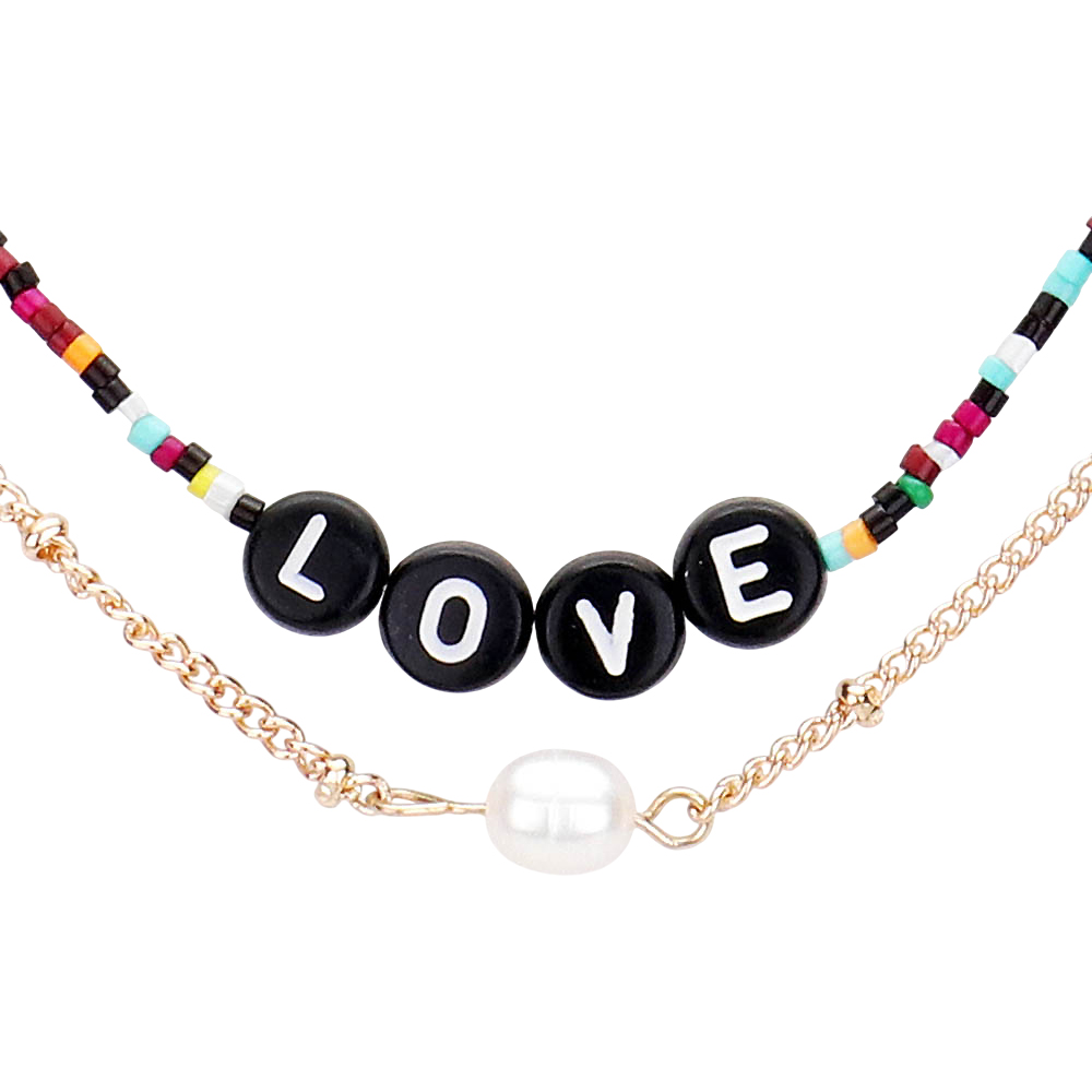 Multi Color Bead Statement Love Pearl Layered Necklace