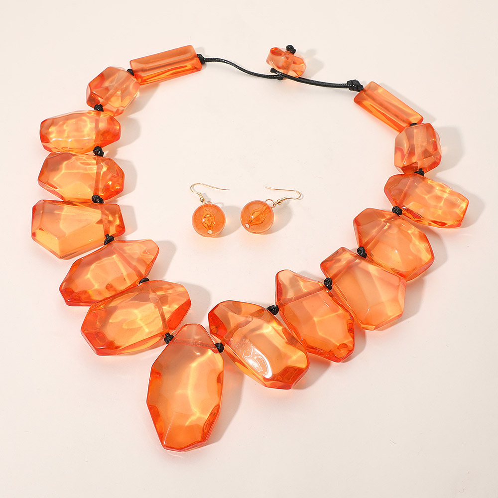 • Bold faceted necklace and matching earrings set with oversized geometric beads. This eye-catching duo is perfect for adding drama to evening looks or elevating any outfit with striking, sculptural style.