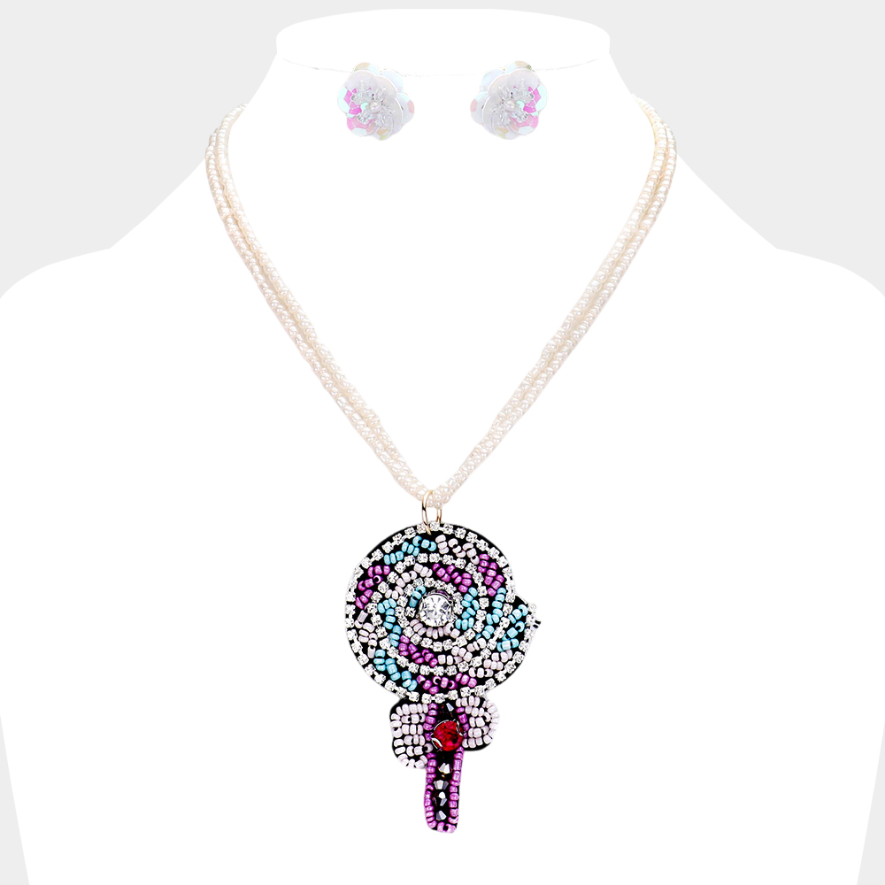 Natural Stone Embellished Squash Blossom Navajo Bead Necklace
