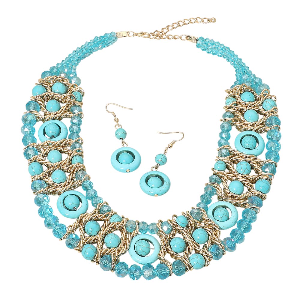 • Eye-catching multi strand statement necklace set featuring layered beaded details with matching drop earrings. Designed for bold boutique styling, festival outfits, and standout event looks. A fashion-forward jewelry set that adds texture, movement, and artistic flair to dresses, tops, and resort wear collections.