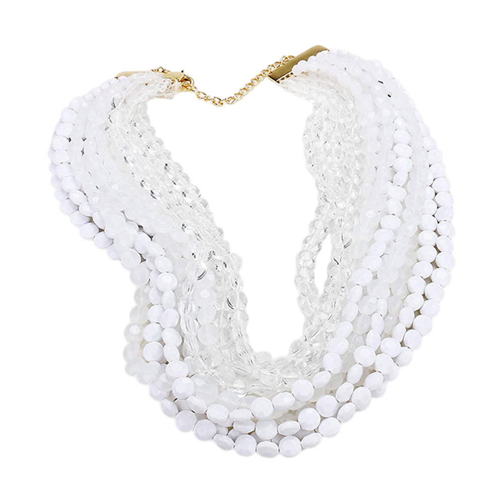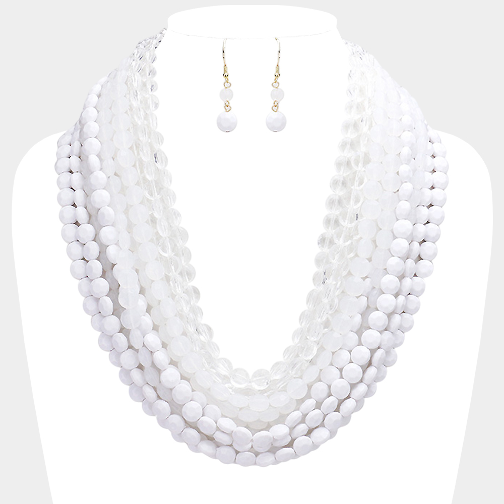 Multi Strand Faceted Round Lucite Beaded Bib Necklace