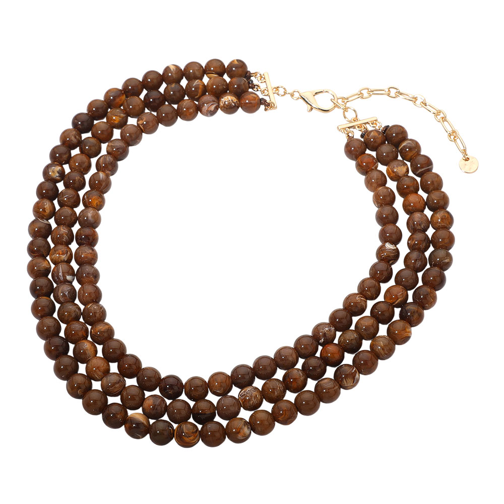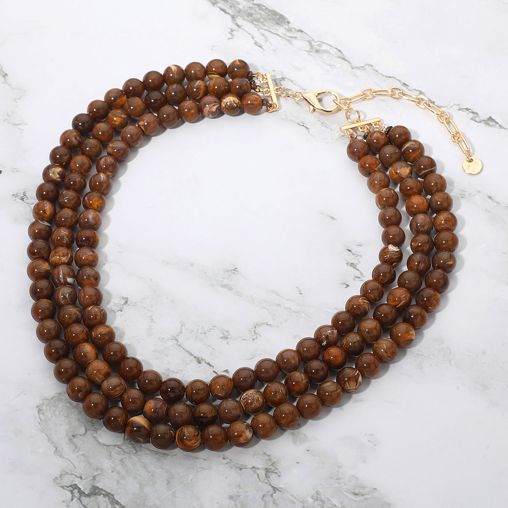 Multi Strand Marbled Resin Ball Beaded Layered Statement Necklace