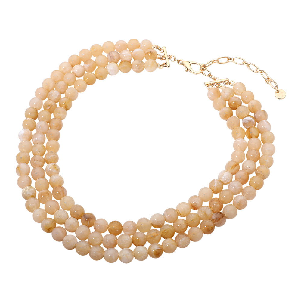 Multi Strand Marbled Resin Ball Beaded Layered Statement Necklace