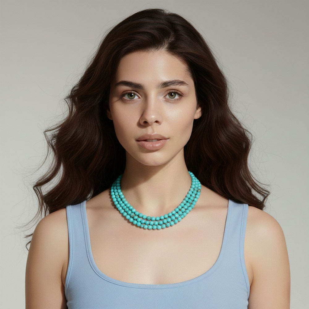 • Enhance any look with this refined multi-strand beaded necklace designed to create a graceful layered effect. Its polished spheres offer a timeless aesthetic, making it an ideal accessory for elevating both casual and formal outfits with understated sophistication.