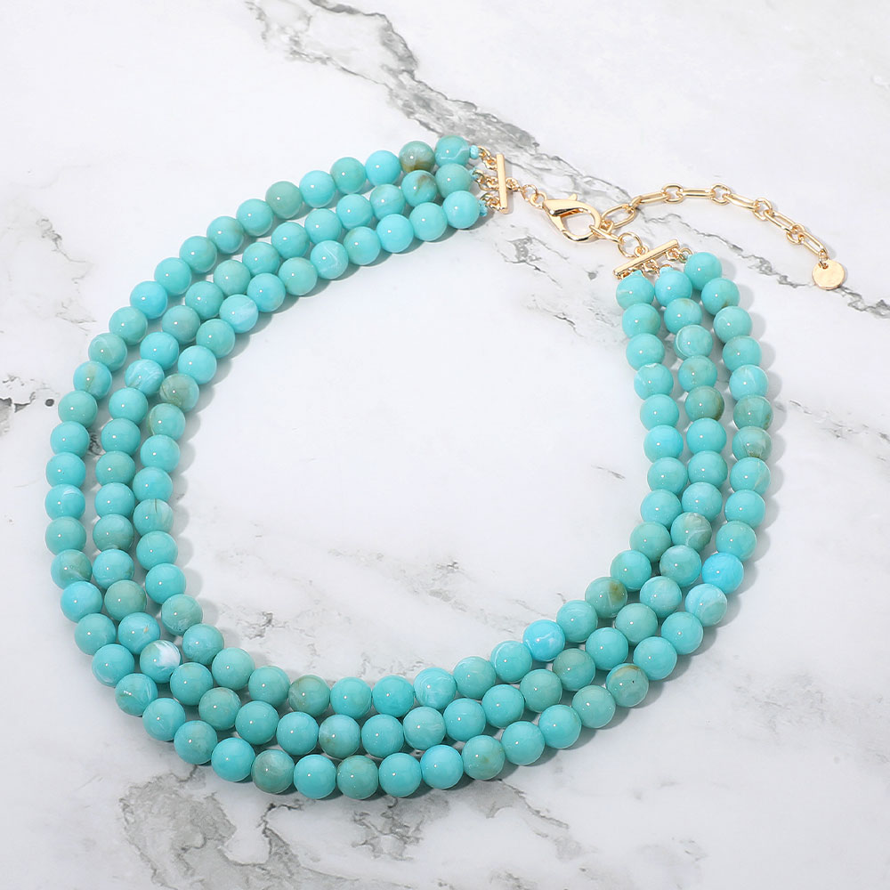 Multi Strand Marbled Resin Ball Beaded Layered Statement Necklace