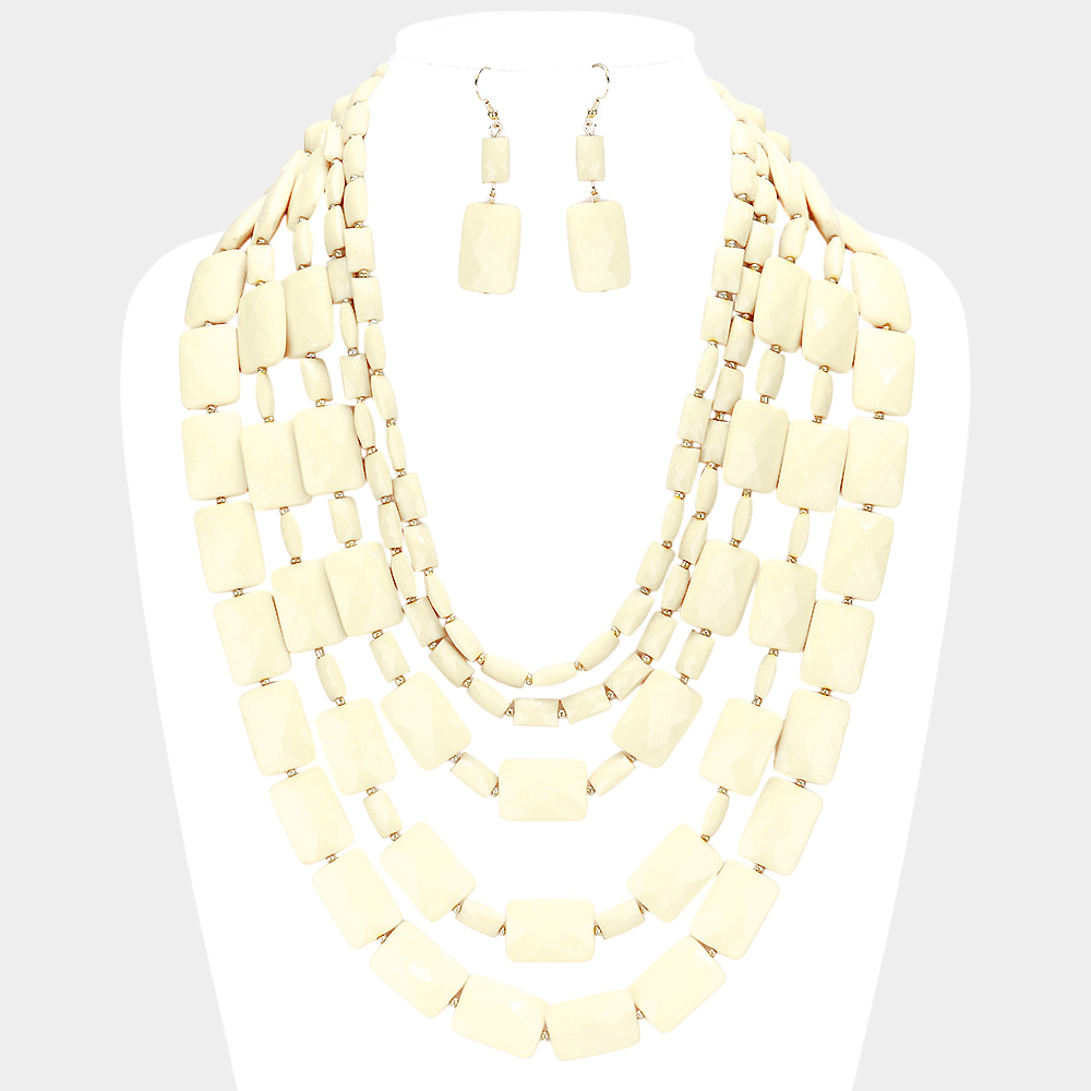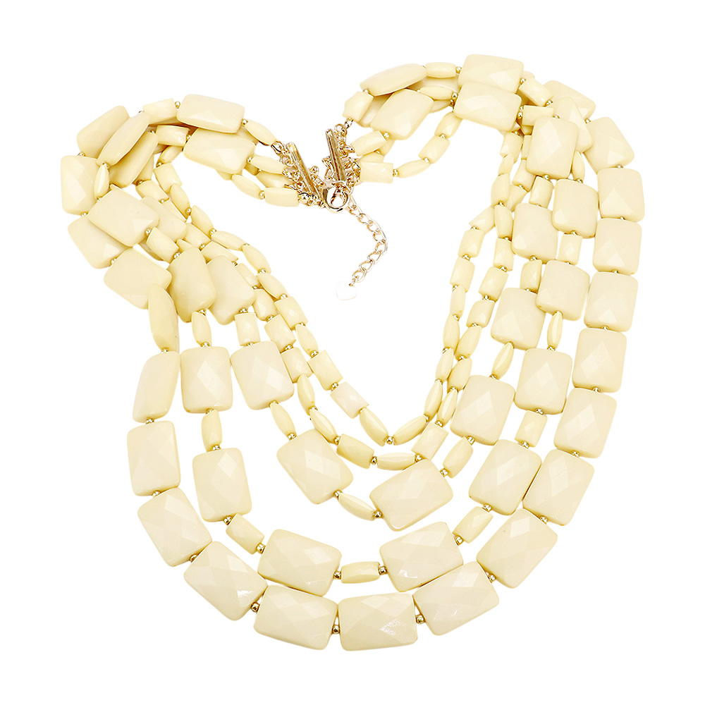 Abstract Metal Accented Faceted Beaded Stretch Bracelet
