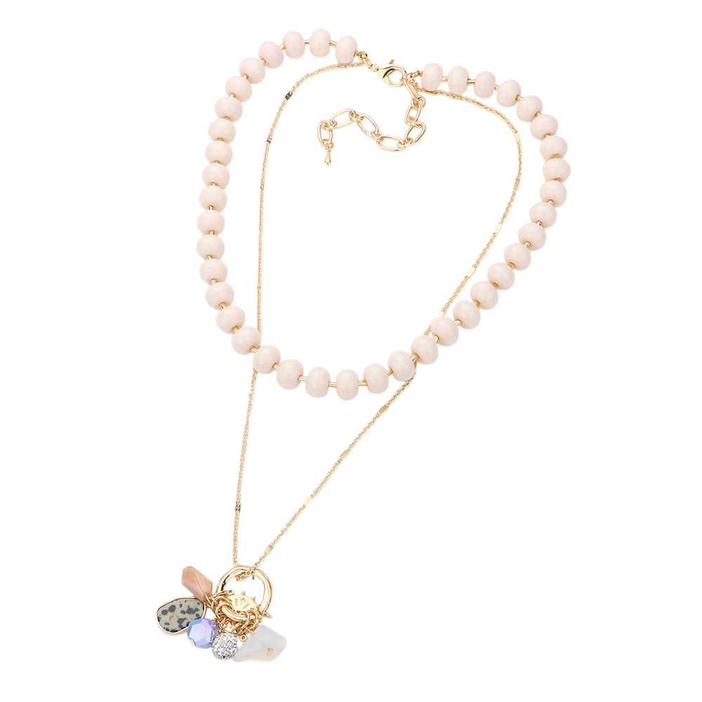 Natural Stone Shamballa Ball Ship Heel Pendant Double Layered Necklace