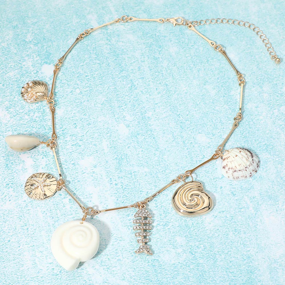 Details • Necklace Size : 18" + 3.5" L • Decor Size : 1.5" L • This ocean charm necklace features a curated mix of coastal-inspired pendants arranged along a delicate chain for a playful yet refined look. Designed to stand out in resort, vacation, and everyday collections, it offers strong visual appeal and easy styling. A statement accessory ideal for boutiques seeking beach-themed jewelry with layered charm detail and giftable versatility. • Lead and Nickel Compliant