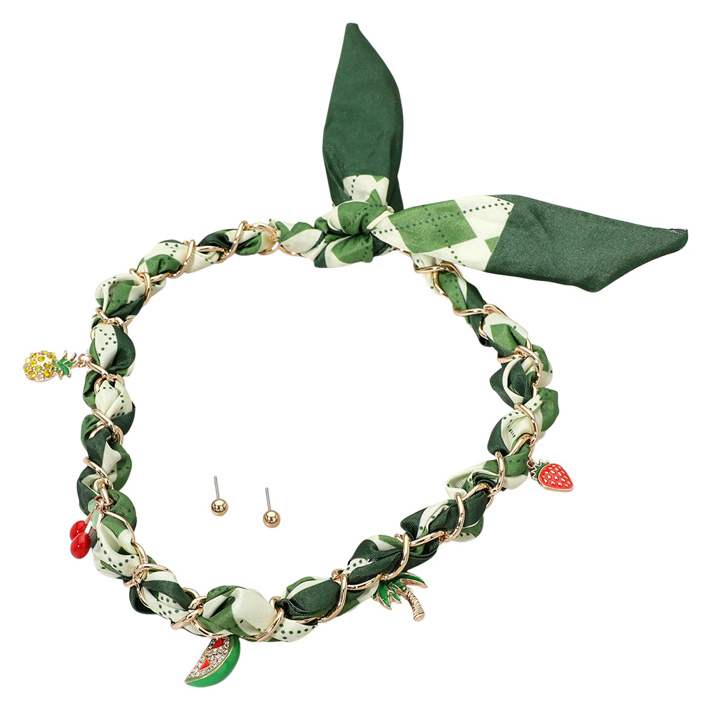 Palm Tree Pineapple Strawberry Cherry Watermelon Slice Charm Fabric Scarf Necklace