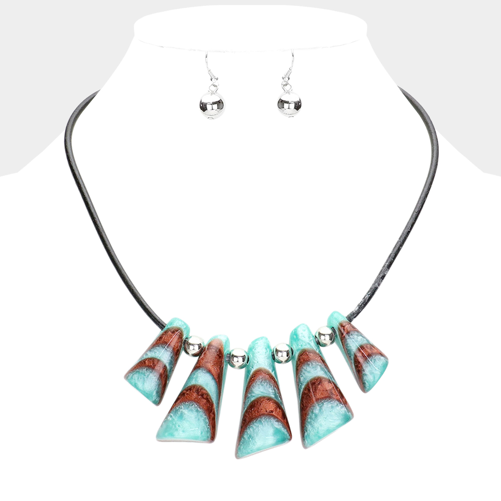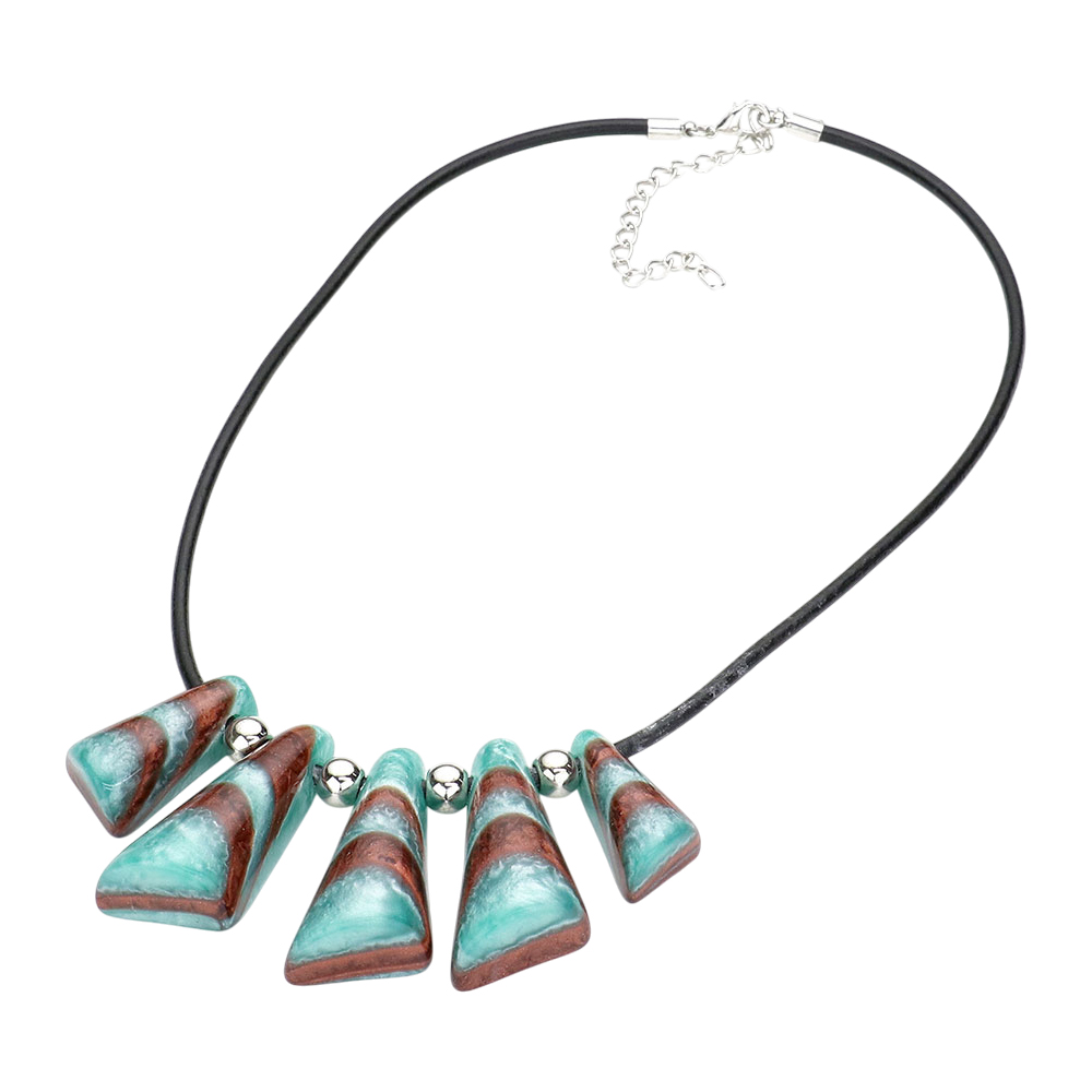 Colored Wood Open Metal Oval Link Triple Layered Necklace