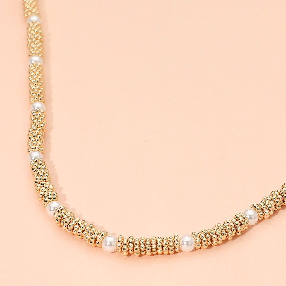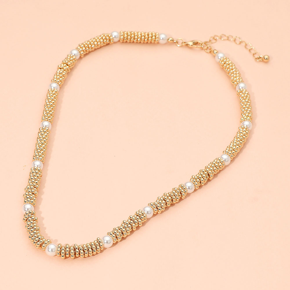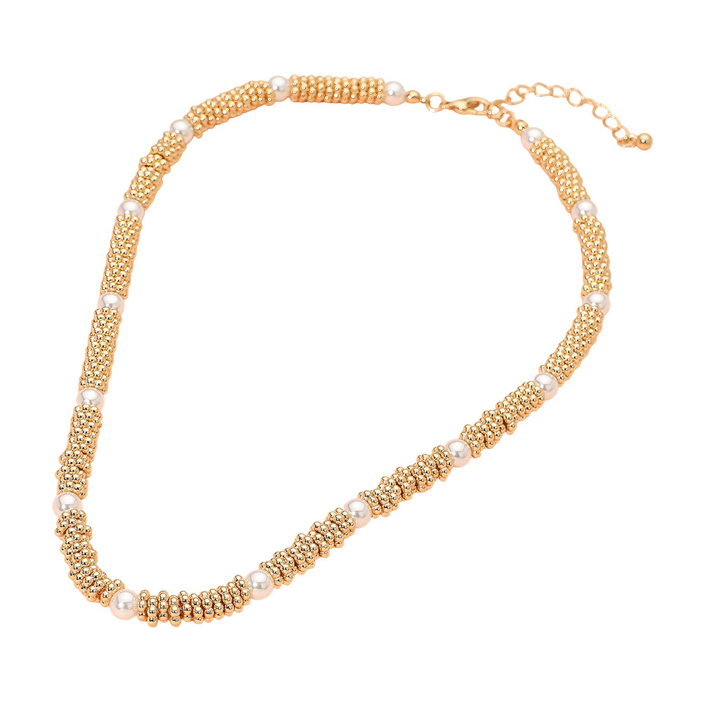• Add a touch of refined elegance with this gold beaded pearl accent necklace. Designed with alternating textured beads and luminous pearls, it offers timeless sophistication—perfect for elevating evening attire or enhancing everyday ensembles with graceful charm.