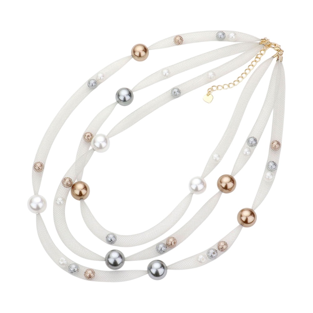 Pearl Accented Triple Layered Mesh Bib Necklace
