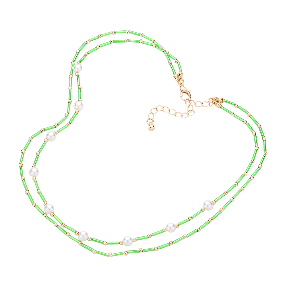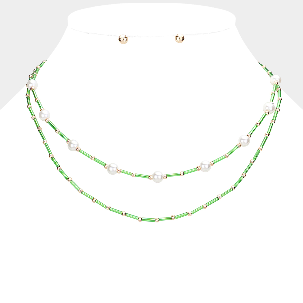 2PCS - Chunky Pearl Pendant Layered Pearl Beaded Strand Necklaces