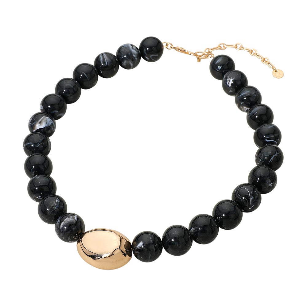 Details • Necklace Size : 19" + 3.5" L • Decor Size : 1" L • Make a bold impression with this beaded statement necklace, featuring smooth round beads and a polished metallic accent. Perfect for elevating your style with a touch of artistic flair and modern charm. • Lead and Nickel Compliant