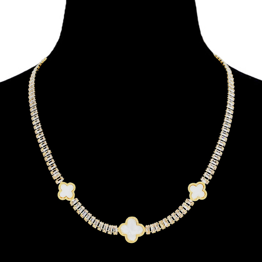 Quatrefoil Charm Station CZ Baguette Cluster Link Necklace Quatrefoil Charm Station CZ Baguette Cluster Link Necklace Quatrefoil Charm Station CZ Baguette Cluster Link Necklace