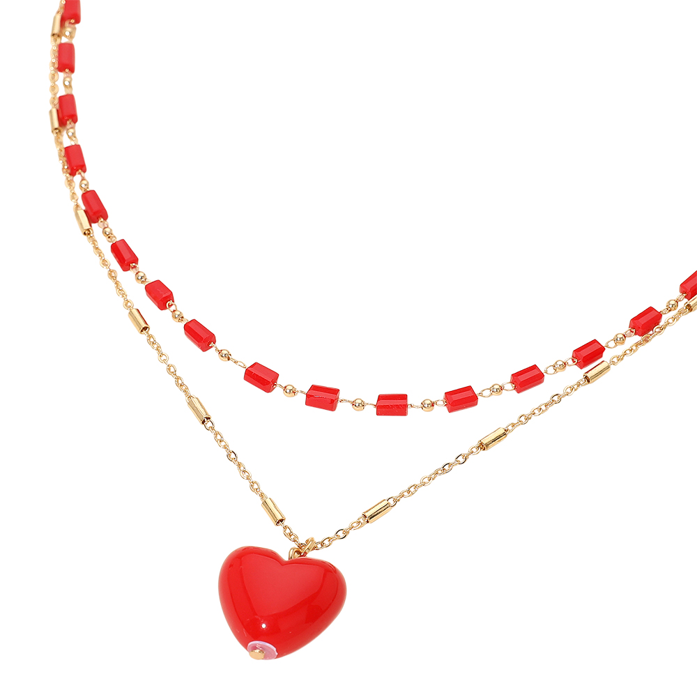 Details • Necklace Size : 14" + 3.25" L • Decor Size : 1.5" L • Pendant Size : 0.75" X 0.75" • Elevate everyday styling with this layered heart pendant necklace featuring dual chain detailing and a bold charm centerpiece. Designed for easy layering or standout solo wear, it adds a romantic statement to casual or dressy looks and makes a thoughtful gift choice. • Brass • Lead and Nickel Compliant