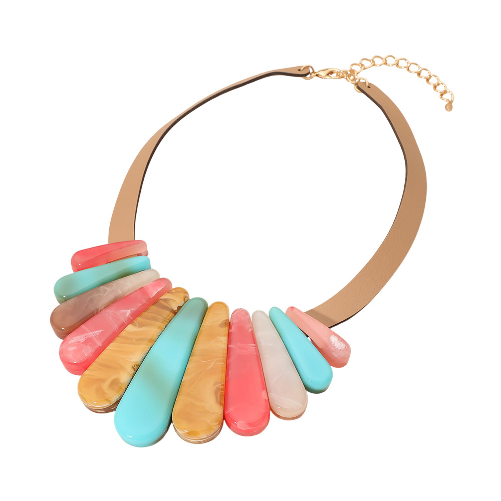Resin Long Teardrop Plate Faux Leather Statement Necklace