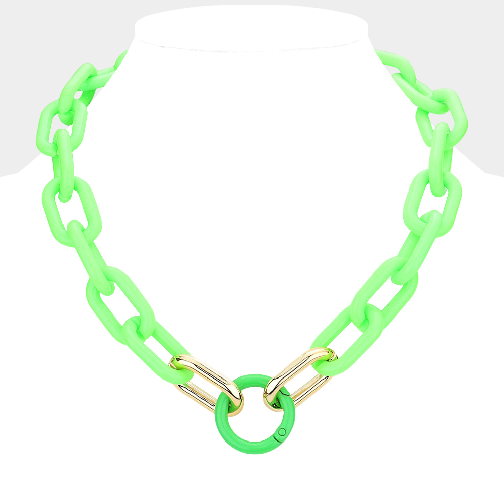 Chunky Wooden Heart Charm Station Layered Chain Necklace