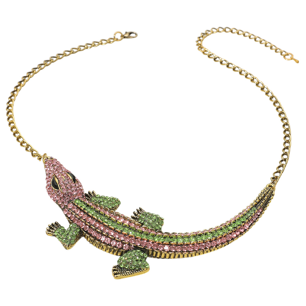 • Stand out with this crystal alligator necklace, designed in bold animal-inspired style. The shimmering rhinestone detailing adds sparkle and edge, making it a unique statement piece perfect for fashion-forward looks, parties, or as a standout gift for jewelry lovers.