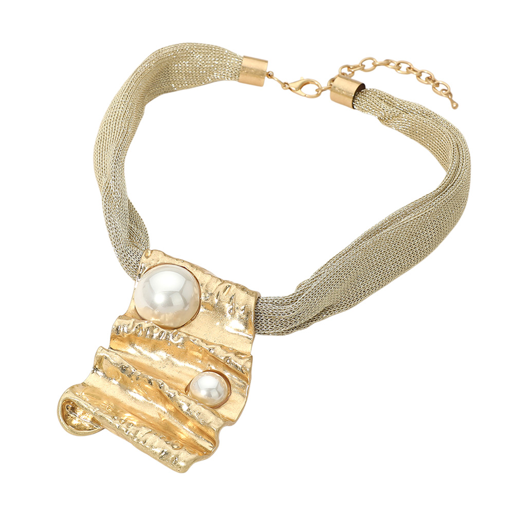 • This statement necklace features layered mesh strands paired with an abstract sculpted pendant design for a bold, modern look. Created to stand out, it adds artistic dimension and elevated style to outfits ranging from casual to dressy. Ideal for boutiques seeking eye-catching, fashion-forward jewelry with strong visual impact.