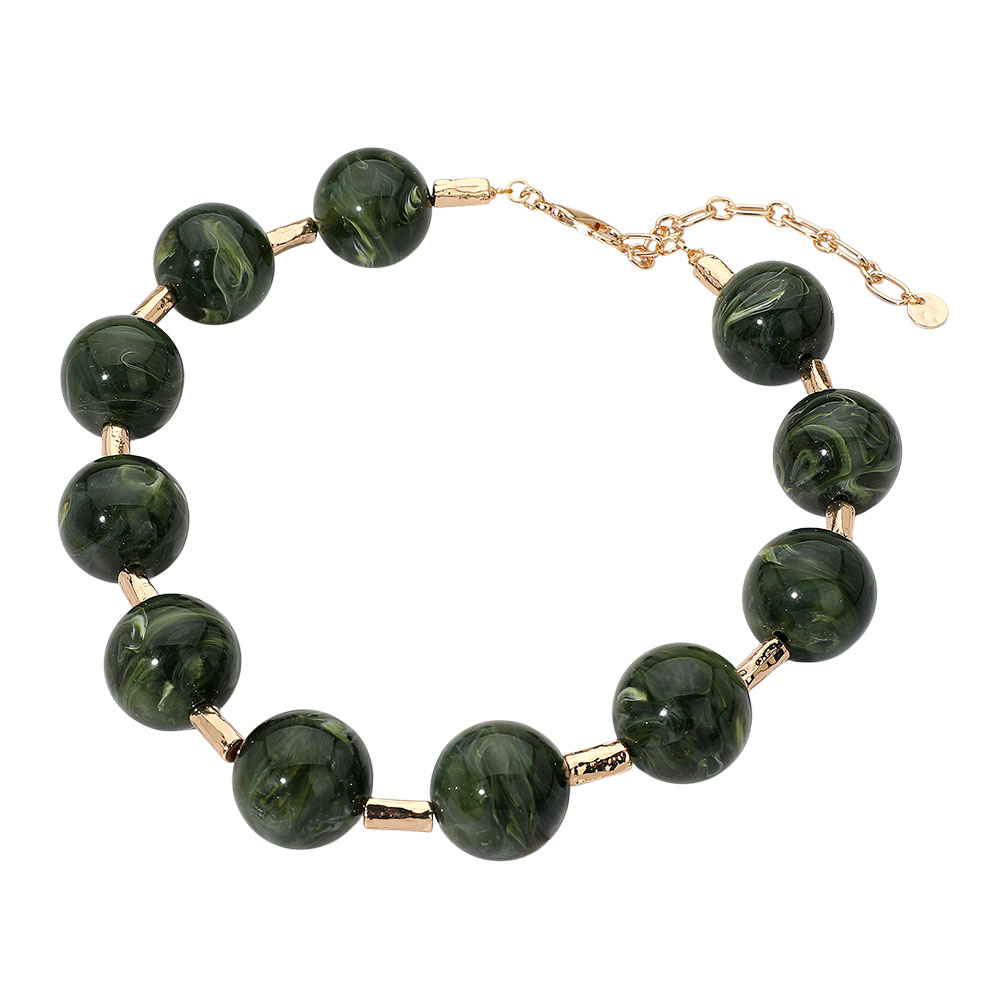 Round Marble Ball Wire Beaded Statement Necklace Round Marble Ball Wire Beaded Statement Necklace Round Marble Ball Wire Beaded Statement Necklace